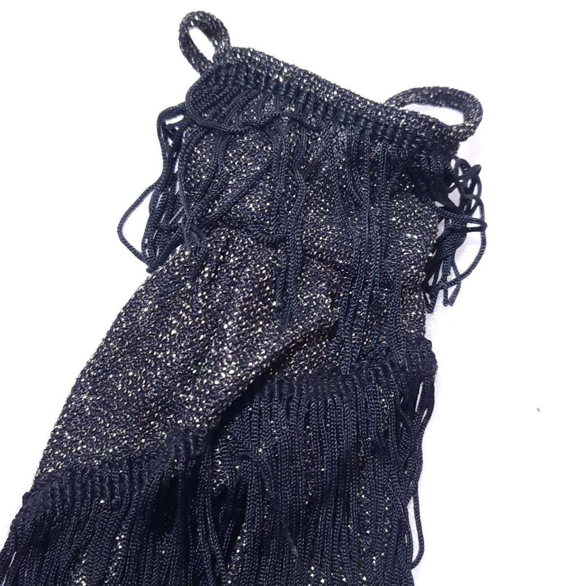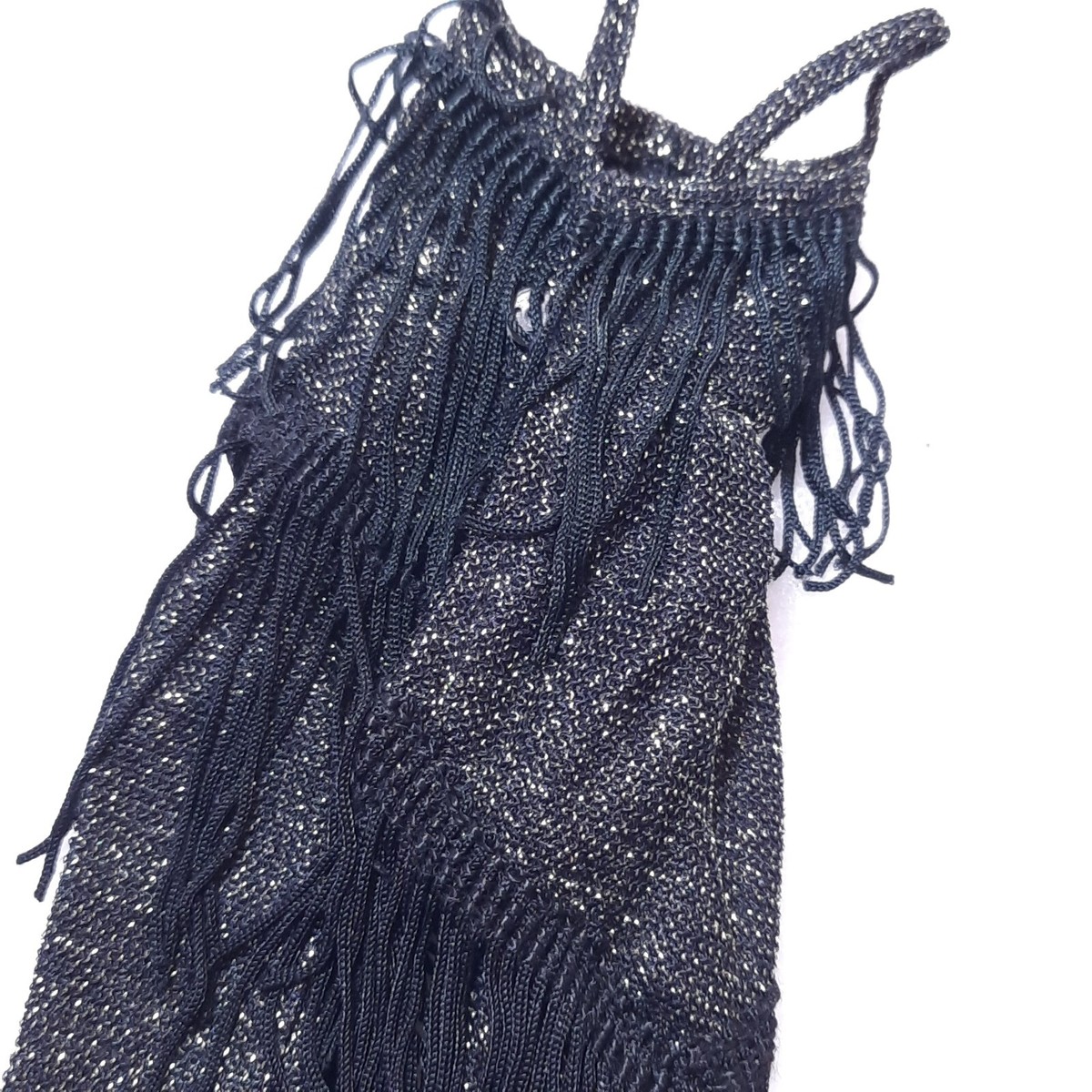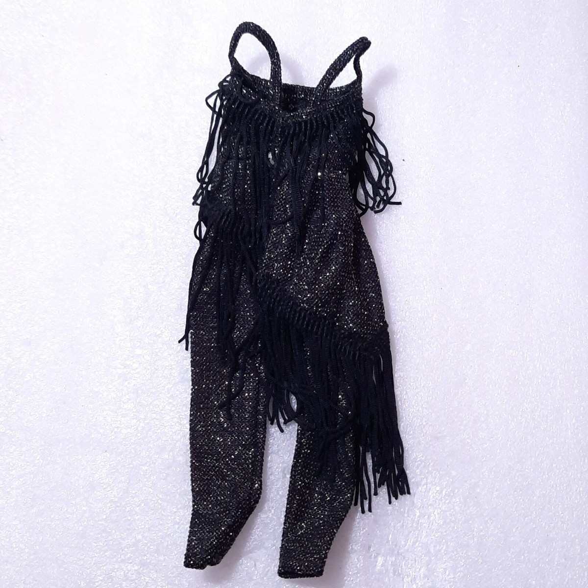 Vintage Shillman Black gold Metallic Shiny Fringe Jumpsuit romper Barbie Clone