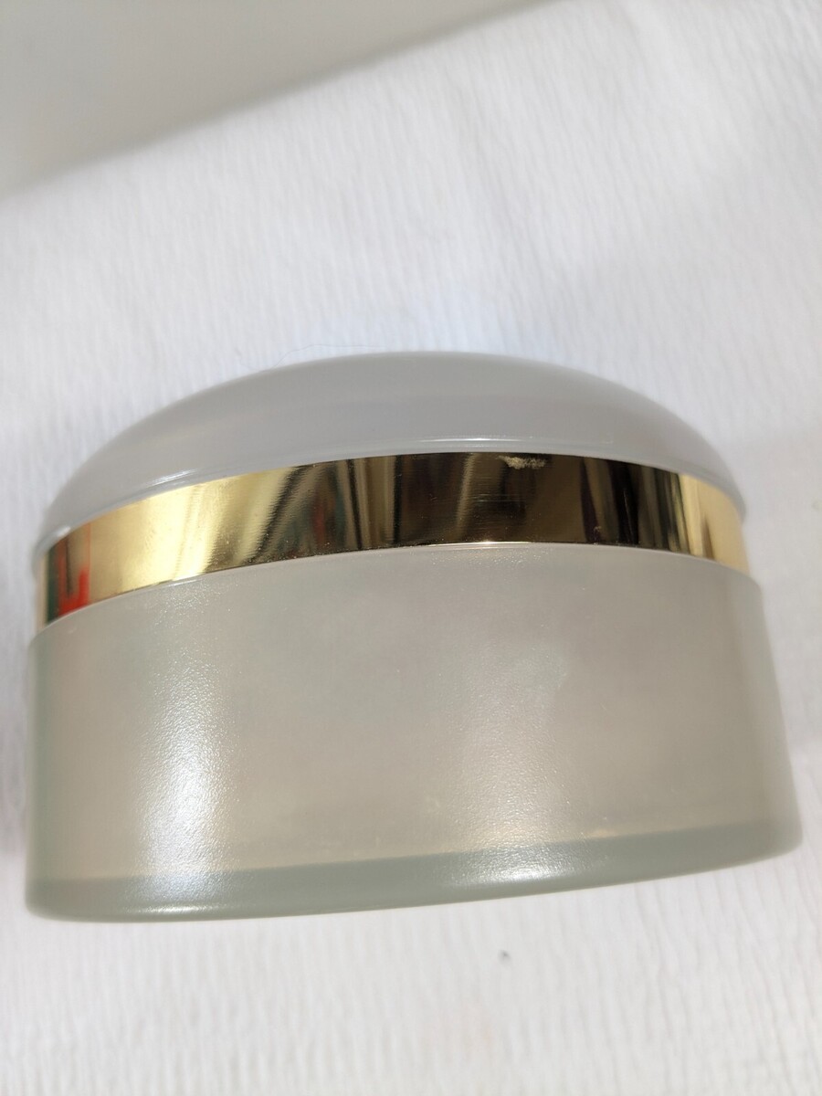 EMTPY plastic container with puff. Some powder residue as shown. Some minor paint wear/scuffs/scratches from use. See pics for details measurements.