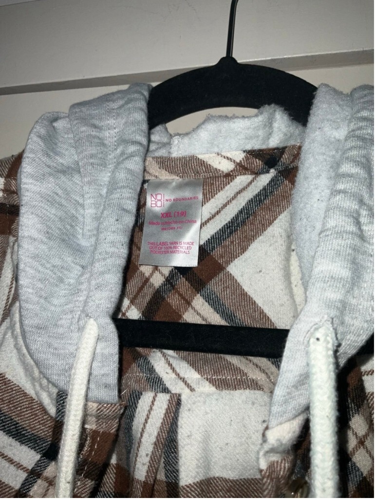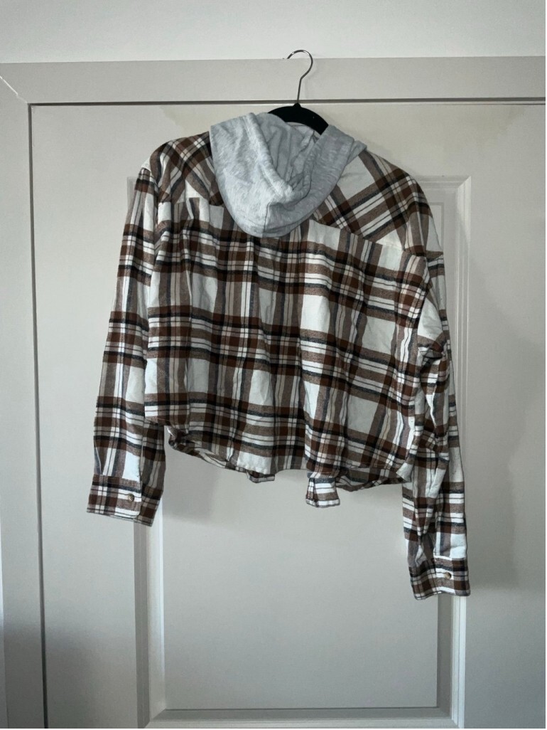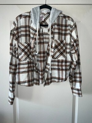 No Boundaries Women's Full Sleeve Hooded Flannel Cropped Top