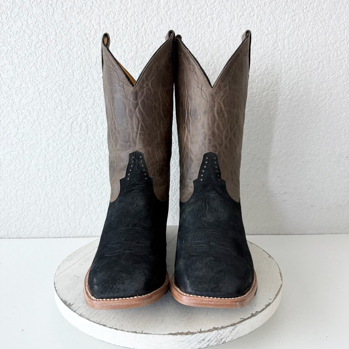 Rod Patrick Mens Cowboy Boots 12.5 D Black Pig Suede Leather Western Square Toe