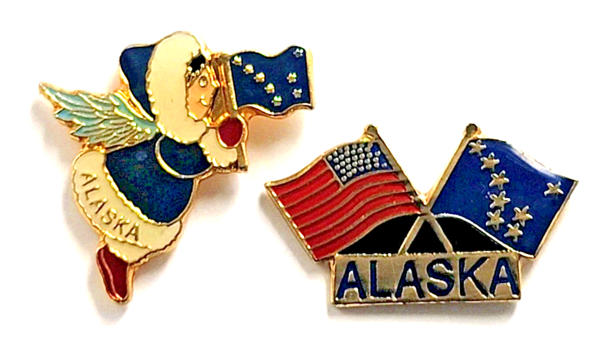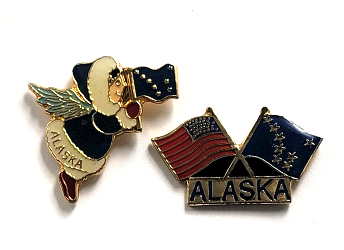 Alaska Flag Enamel Pins Lot 2 Eskimo Angel & USA Crossed Flags Travel Souvenir