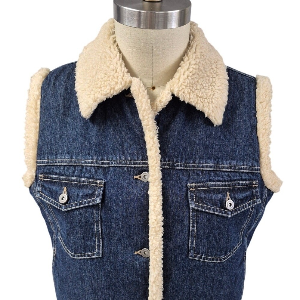VTG 80s 90s Liz Claiborne LizWear Blue Denim Vest Sherpa Lined Cotton Sz L