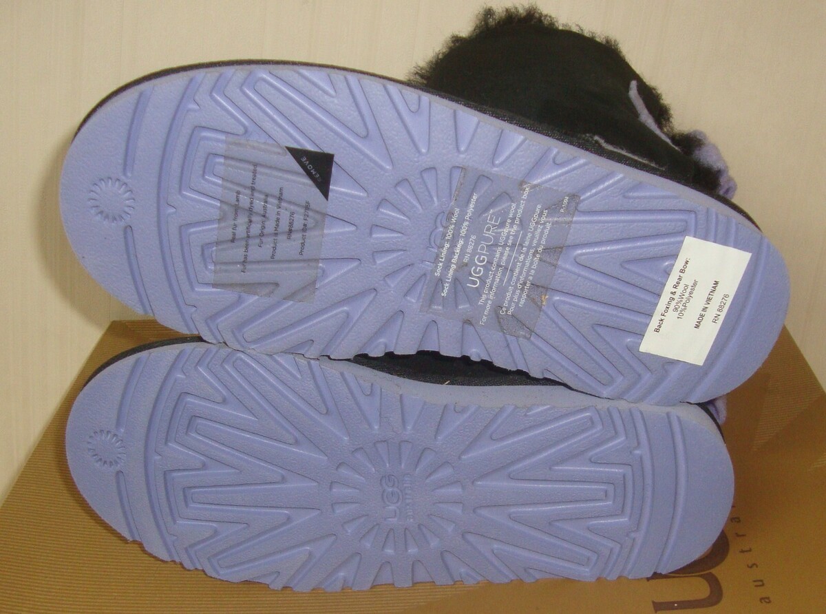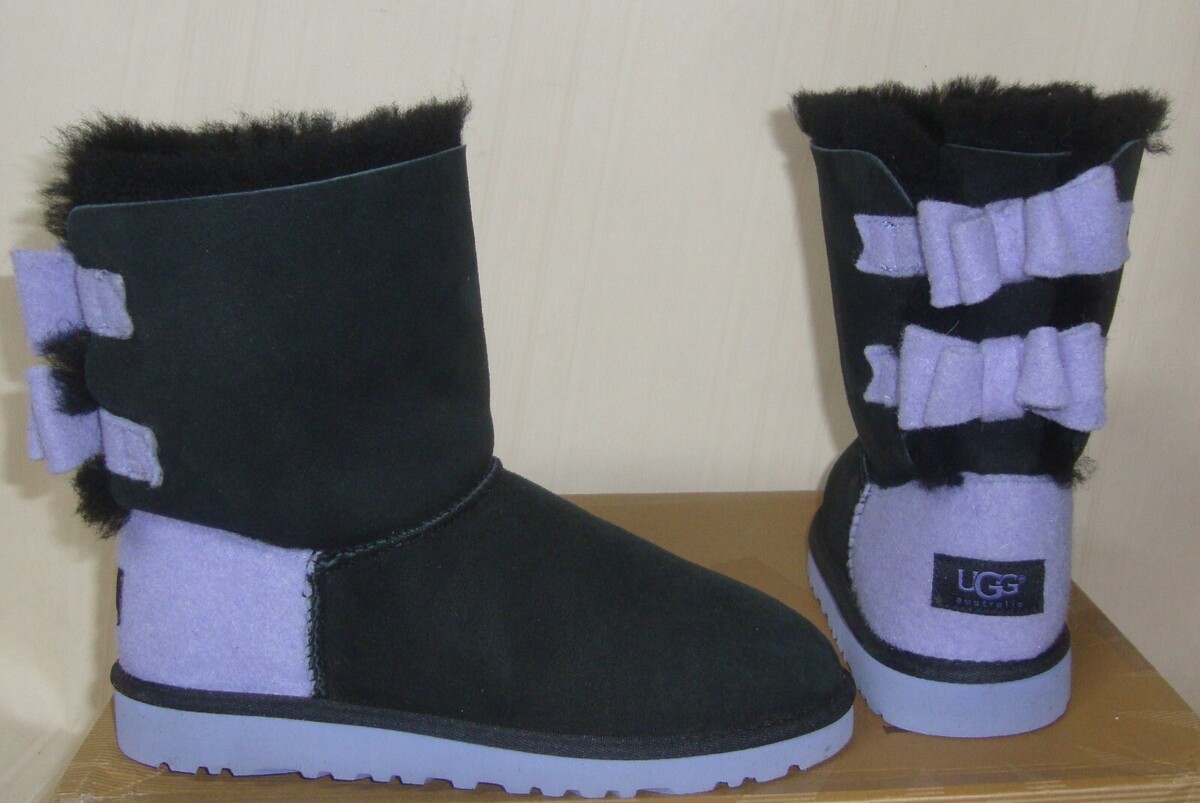 UGG Black Purple Bailey Wool Bow Boots Size 4 Youth =Women Size 6 NEW 1007933K
