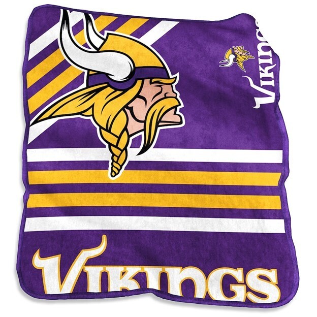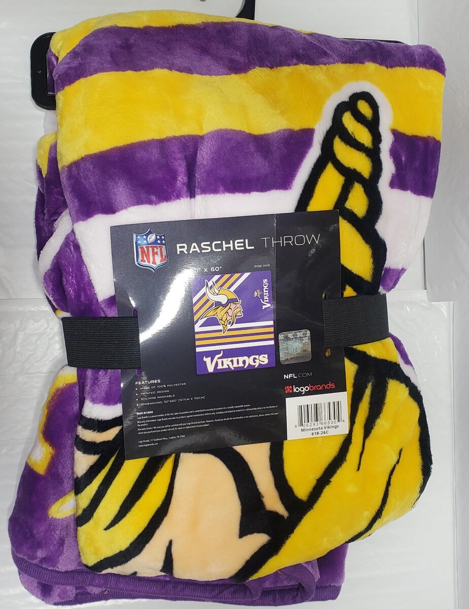 This is a 50" by 60" plush Minnesota Vikings raschel throw blanket.