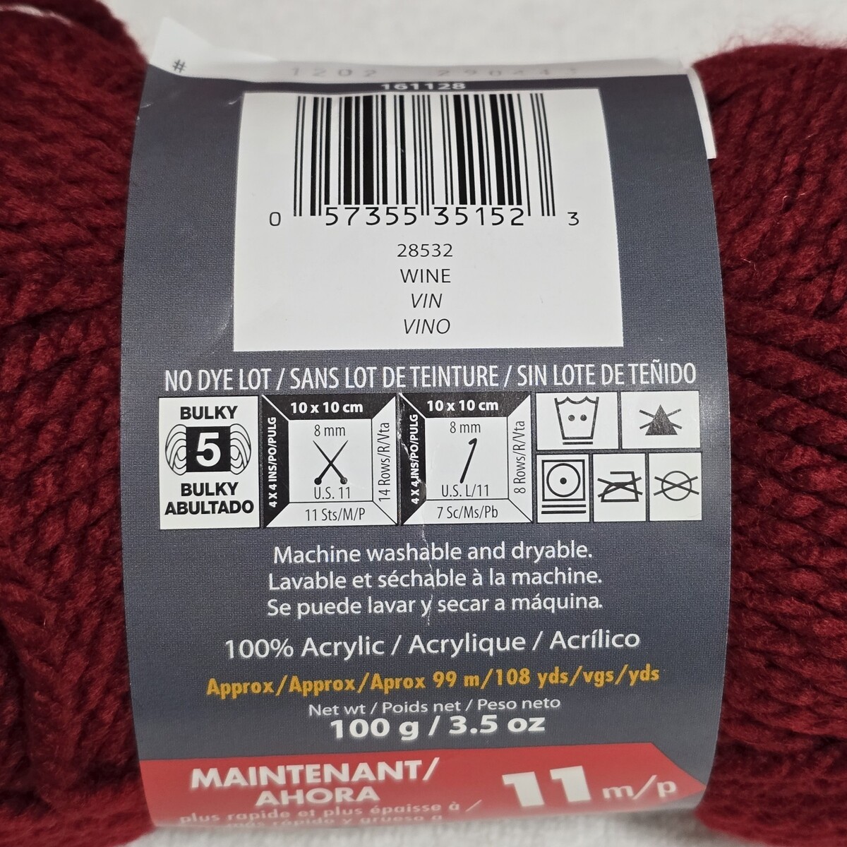 New 7 Skeins Bernat Softee Chunky Yarn Acrylic 108 yds ea. 161128 WINE