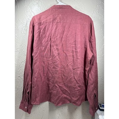 BFO MFG Delave Linen Mens Button Up Down Shirt Banded Collar Slim Fit Size Large