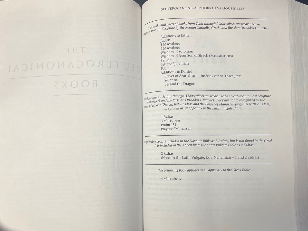 Hardback as pictured, no marks or names. Bible edge looks a little bloated? Includes the Deuterocanonical Books. First edition. Shipping daily.