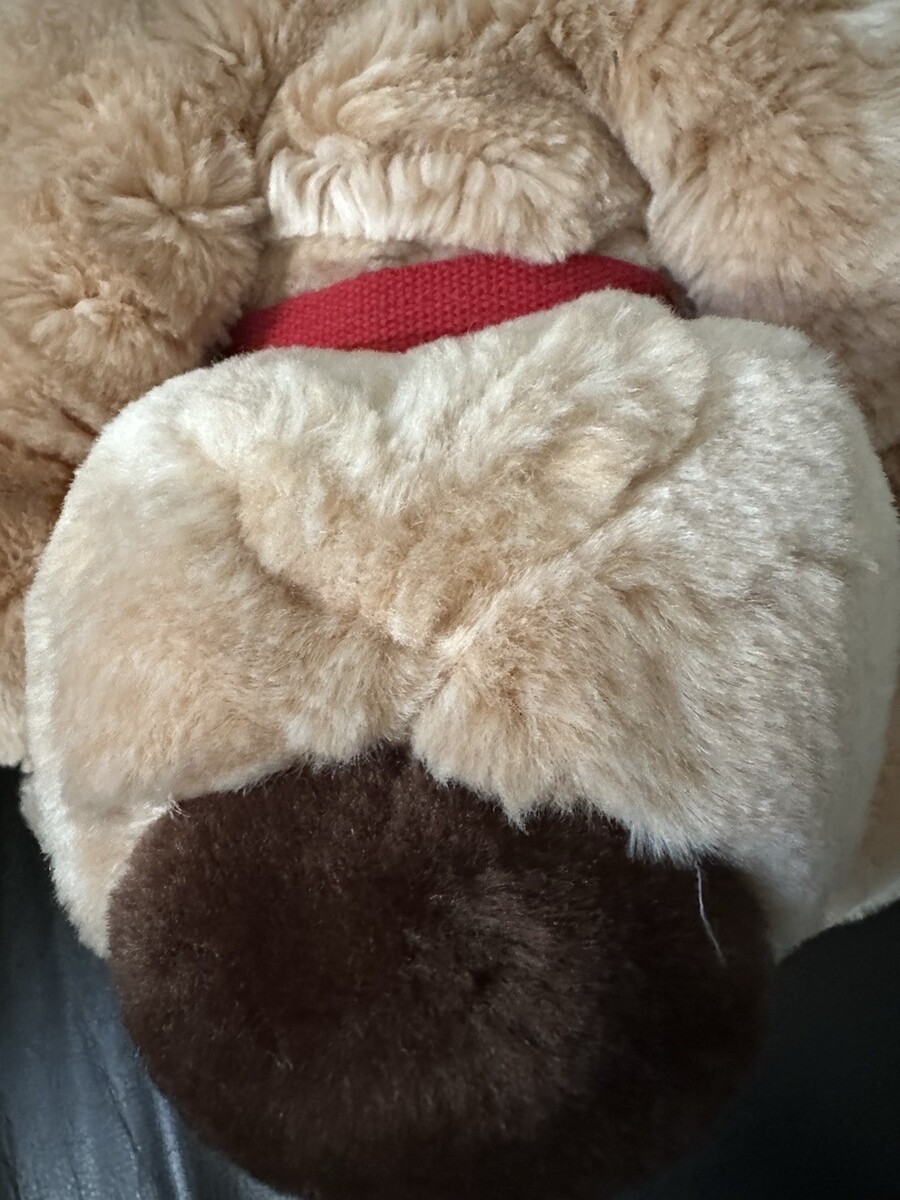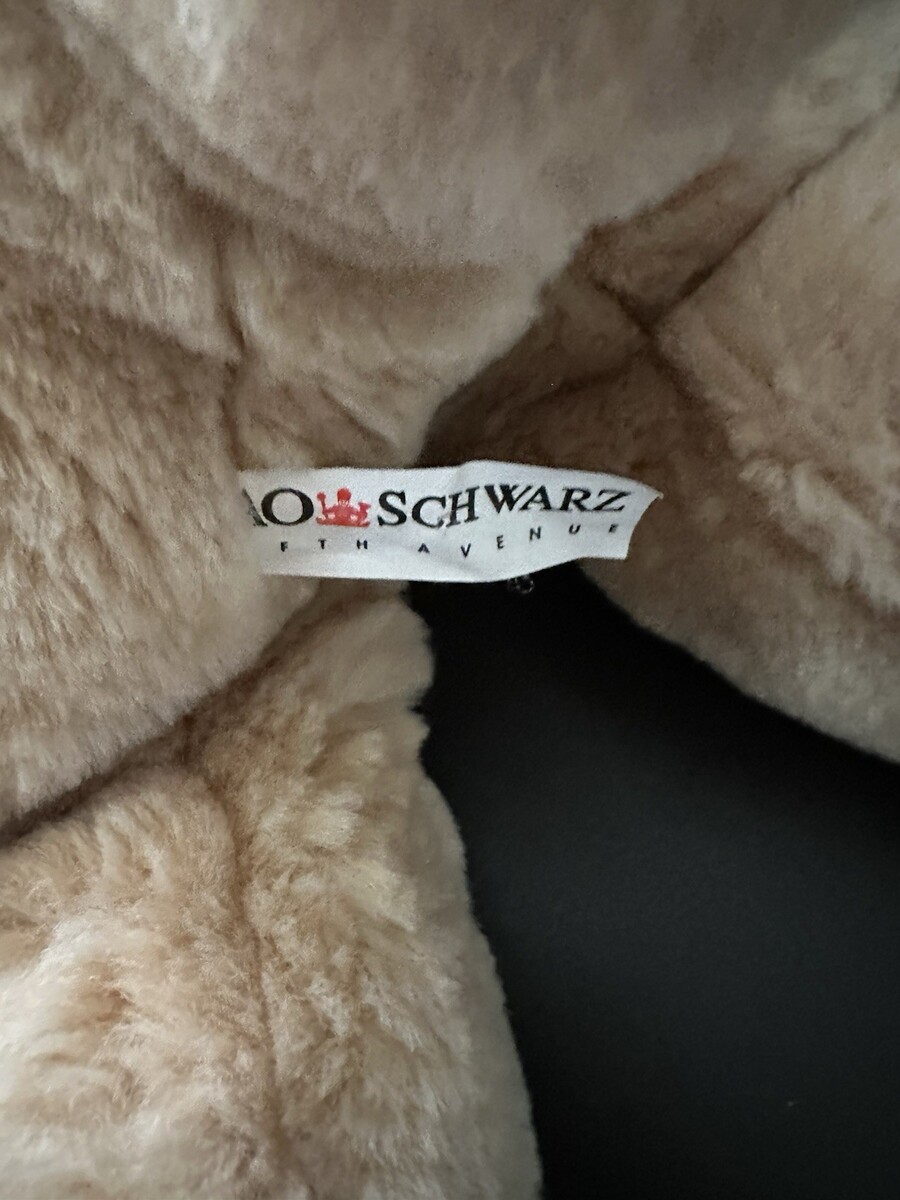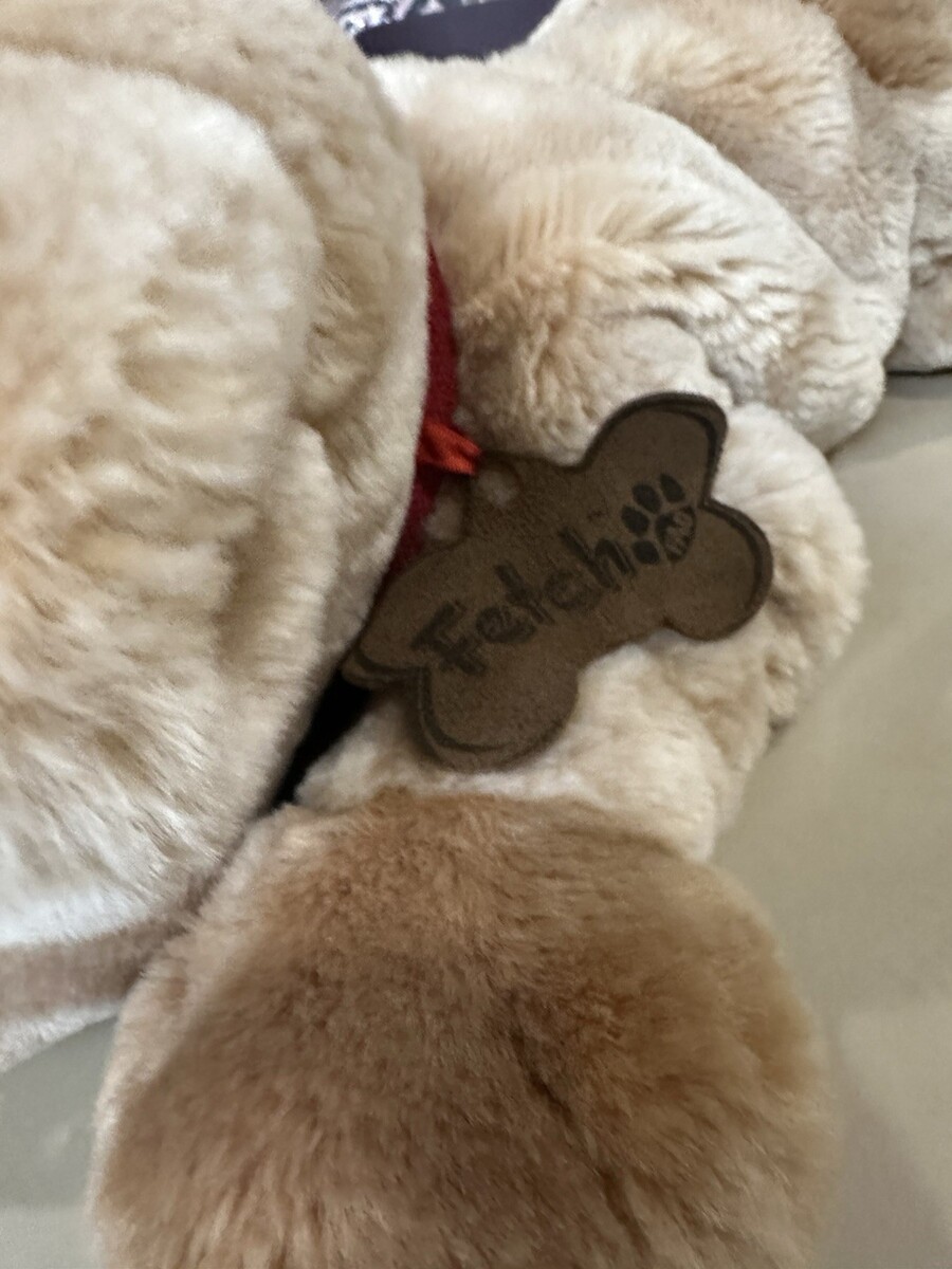 The grandparents bought this beautiful Fetch pup for their grandson which is my son. They lived in New York and whenever they took the train home from work they would pass FAO SCHWARTZ FLAGSHIP STORE. My son didn?t care for stuffed animals or any blankets or passes (he is 45 now)I took this pup and the rest of the stuffed animals and put them away for his kids my grandchildren. But I never got around to giving this one to them. They are older now and really don?t need this pup. So I?m letting him go. He is in like brand new condition never played with or abused so there is no usage on Mr Fetch. He is thick and lush and has all his fur (lol) I was going to say hair excuse the pun. If I was buying a stuffed animal I would have no problem buying this for my great grandchild. The only thing he is missing is the tag. Kept in a sealed bag for 20 years or so.