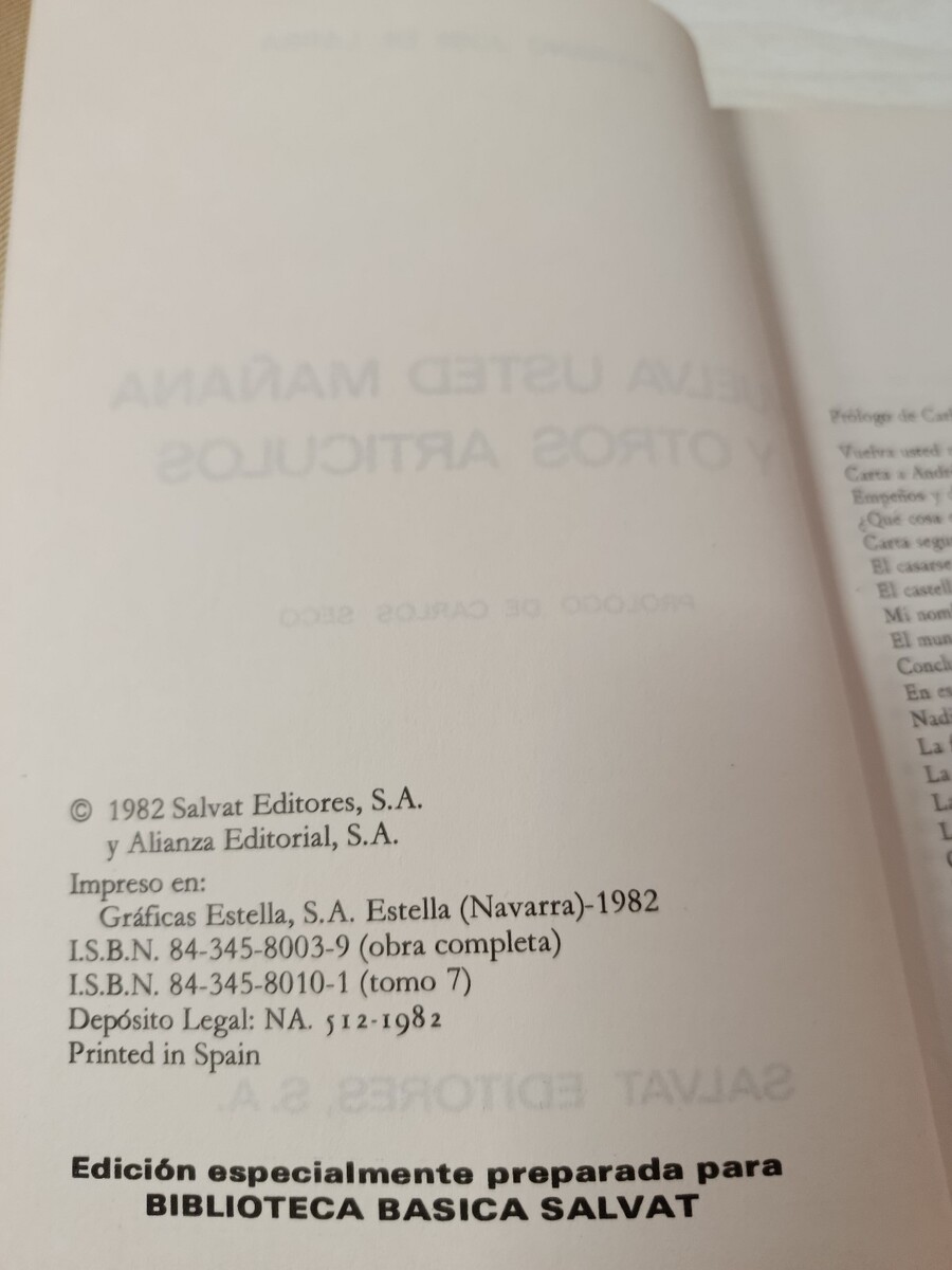 Sie kehren morgen zurück und andere Artikel Mariano Jose de Larra Basic Library Salvat 1982 Spanisches Buch