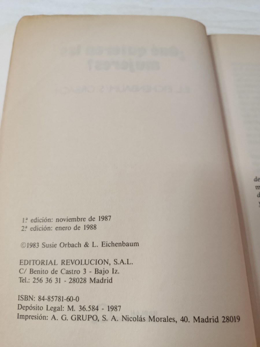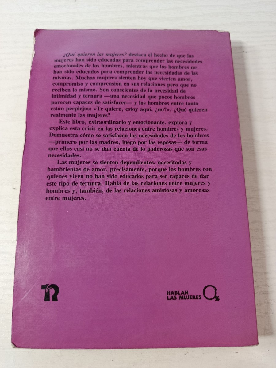 Gepostet 1987 vom redaktionellen Hadlan, Was wollen Frauen? es un Essay von Susie Orbach und Luise Eichenbaum, CO -Fangern del Frauen -Therapiezentrums de London. Die Arbeit befasst sich mit den emotionalen, sozialen und psychologischen Bedürfnissen de Frauen in un Kontext, der durch Transformationen gekennzeichnet istdel Feminismusde Finaledel 20. Jahrhundert. Con un Kritischer und praktischer Ansatz bieten die Autoren Tools an para das mejor zu verstehenrelacionesde Ehepaar, Selbstwert und weibliche Identitat.