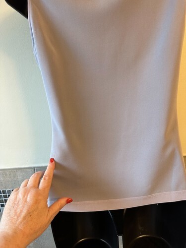 This pre-owned CALVIN KLEIN collection double layer silky lavender tank is in very good pre-owned condition aside from a pin-sized mark on the back panel (as seen in the photo). It features: