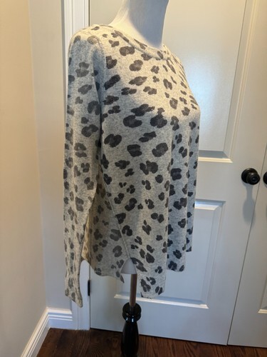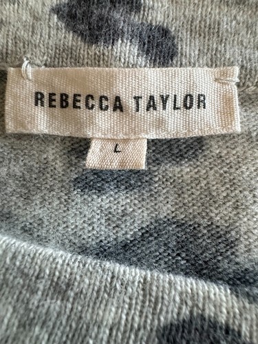 Rebecca Taylor Cashmere Blend Gray Cheetah Print Sweater SZ L NWOT