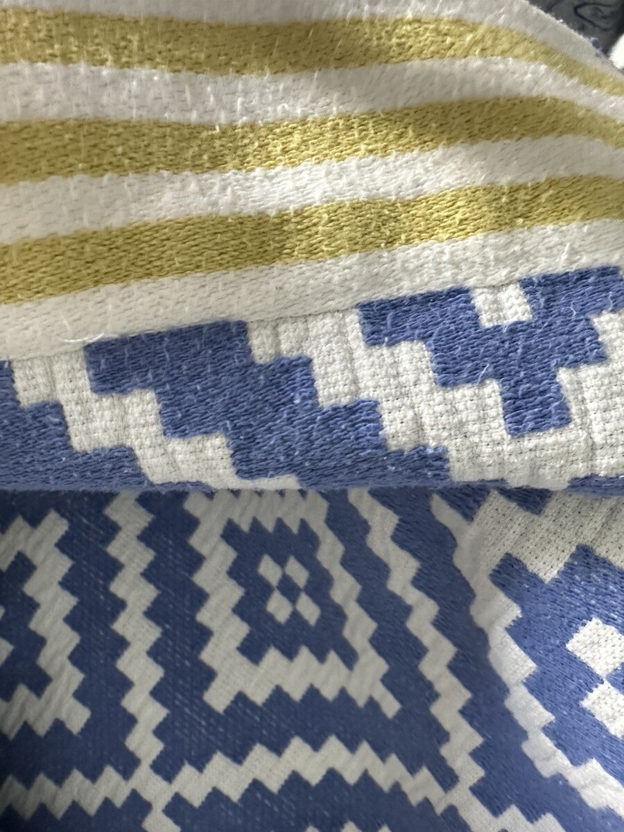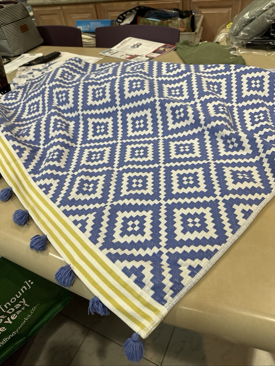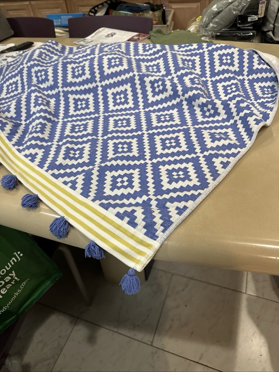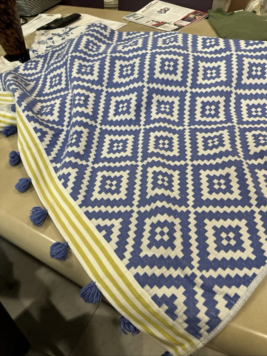 John Robshaw Alabat For Anthropology Beach Towel/Tassels 36”x62 Blue/Wht Pre Own