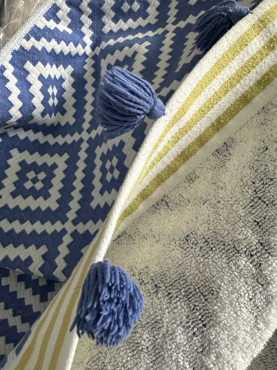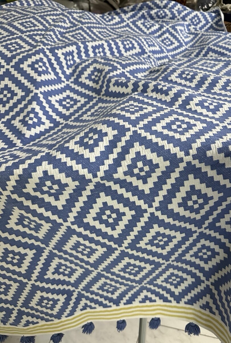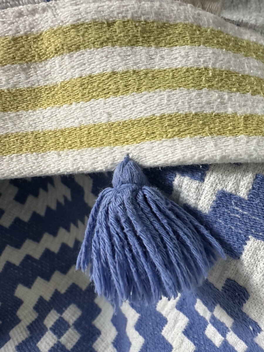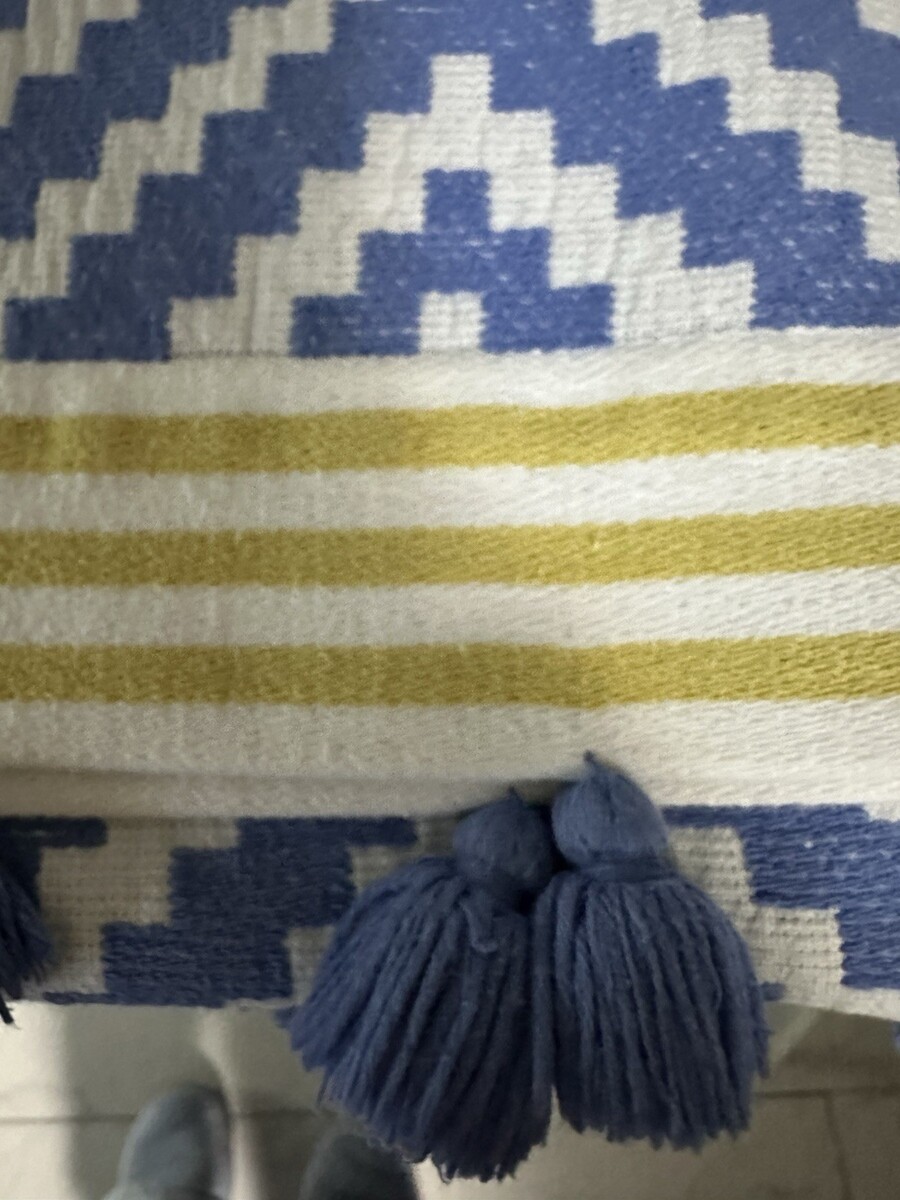 John Robshaw Alabat For Anthropology Beach Towel/Tassels 36”x62 Blue/Wht Pre Own