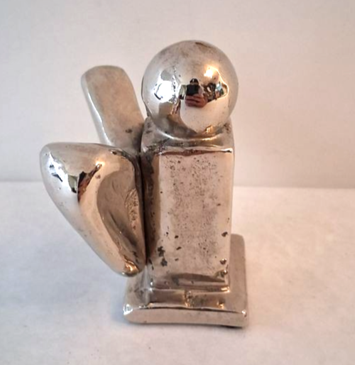 Vintage Jan Barboglio Mini Guardian Angel Cast & Plated in Nickel 3" x 2" x 4"
