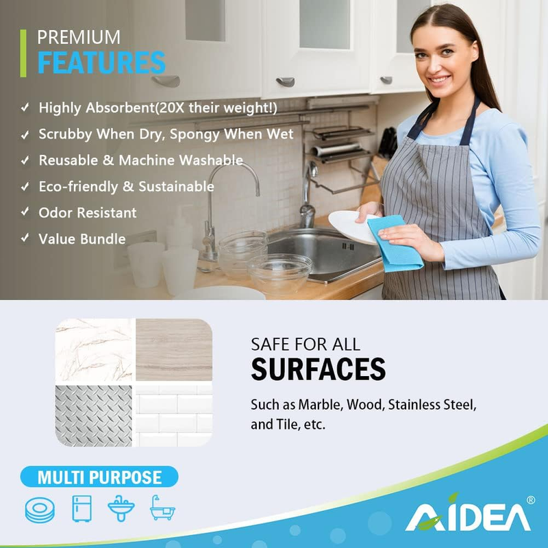 AIDEA all-purpose sponge cloth paper towel is safe for use on all surfaces, including marble, wood, stainless steel, and tile, leaving a streak-free and lint-free effect.