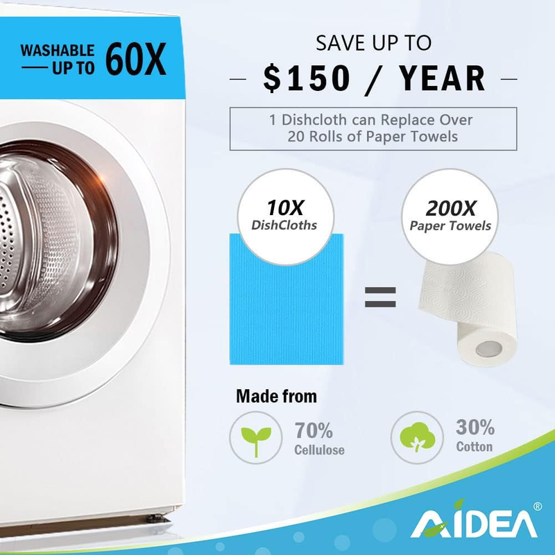 Long-Lasting Reusable: AIDEA swedish dishcloths eliminate the need for disposable paper towels, dish rags, or wipes; endure several weeks of use; washable and reusable; significantly reduce reliance on disposable products