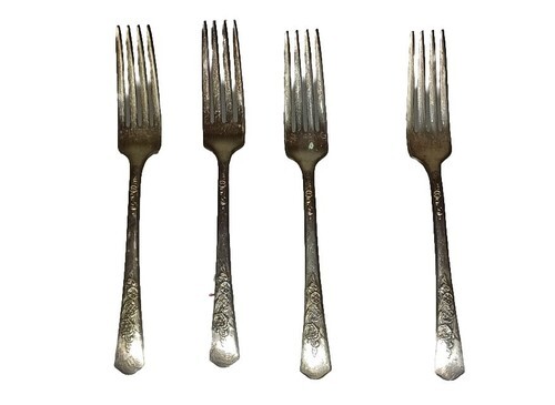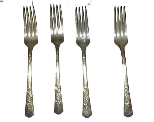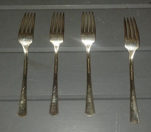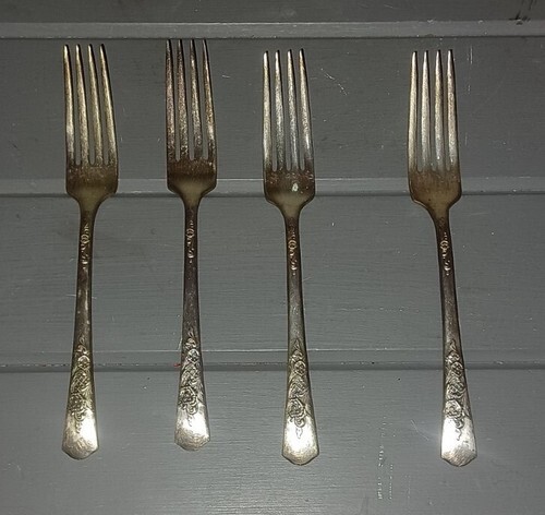 Wood Rose Silver Plate ca 1950 WOOD ROSE 4 Dinner Forks Silverware Flatware 7.25"