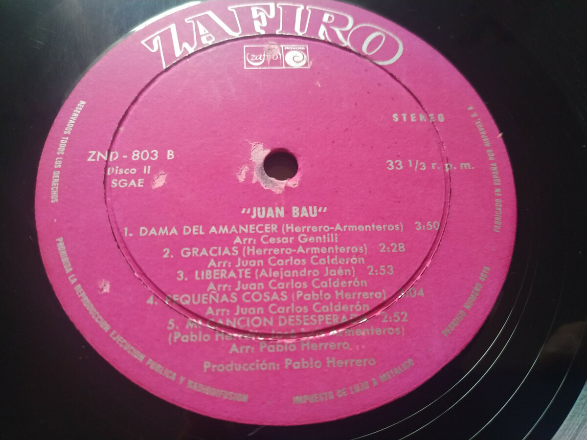 Juan Bau Exitos Zafiro 1976 ZND-803 - 2 X LP and similar items