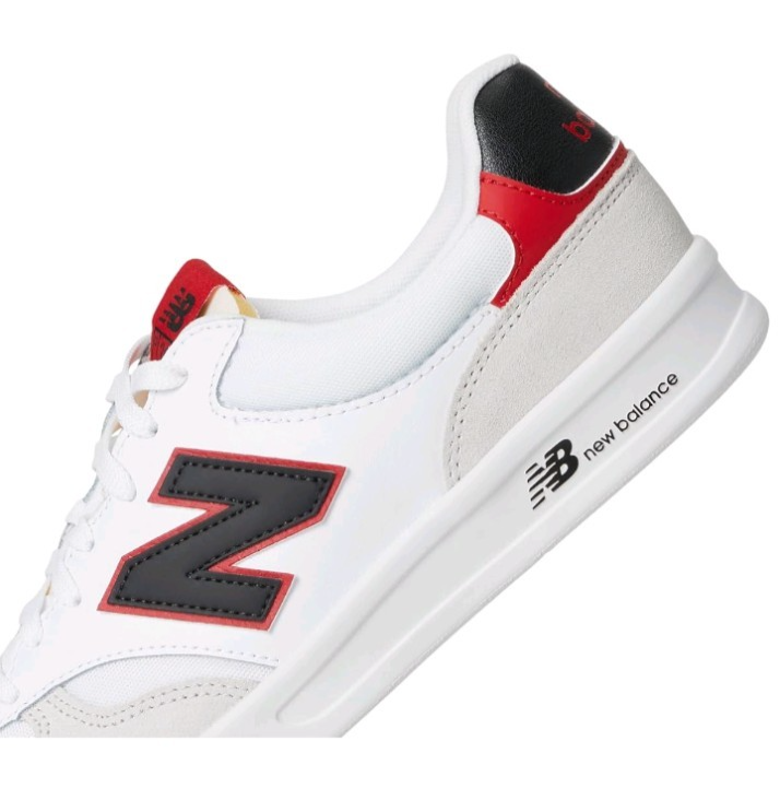 The New Balance 300 V Court White Navy Red CT300 Men's Leather Low Top Fashion sneakers are a stylish and comfortable choice for casual occasions.
