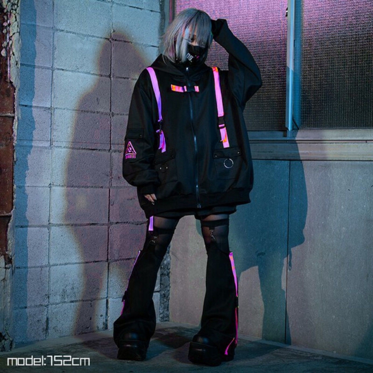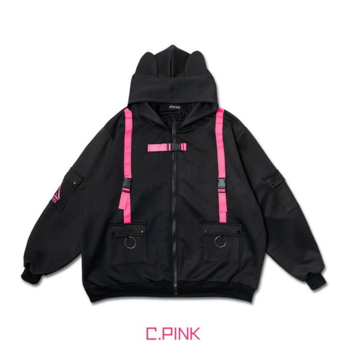 Cyberpunk Cat ears black & bright pink punk emo zip up hoodie - unisex XL