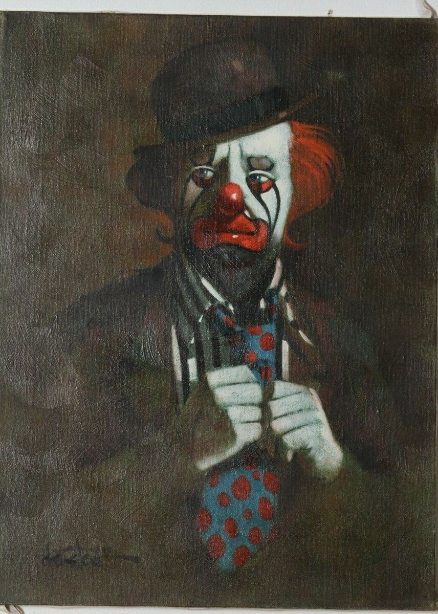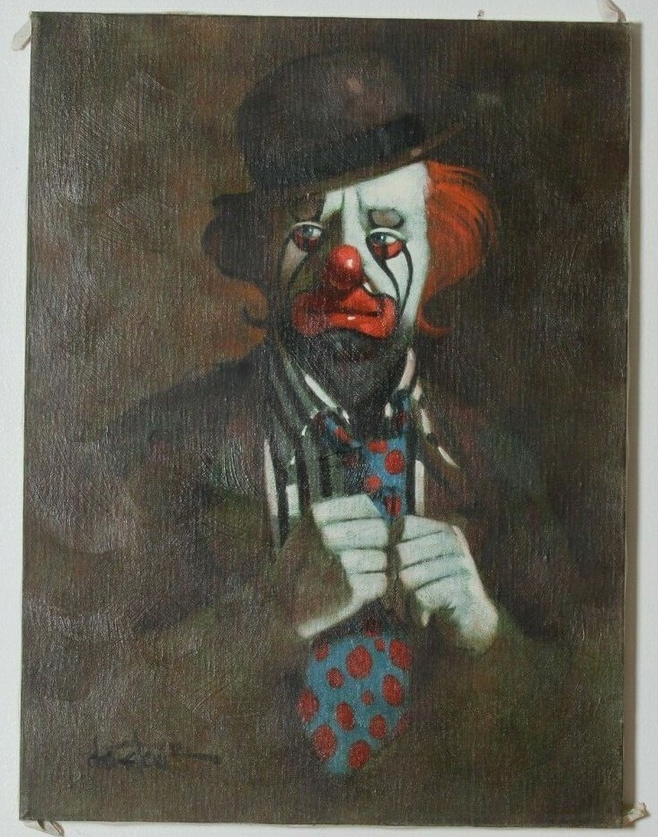 Payaso con pintura al oleo de tono de lunares de Chuck Oberstein