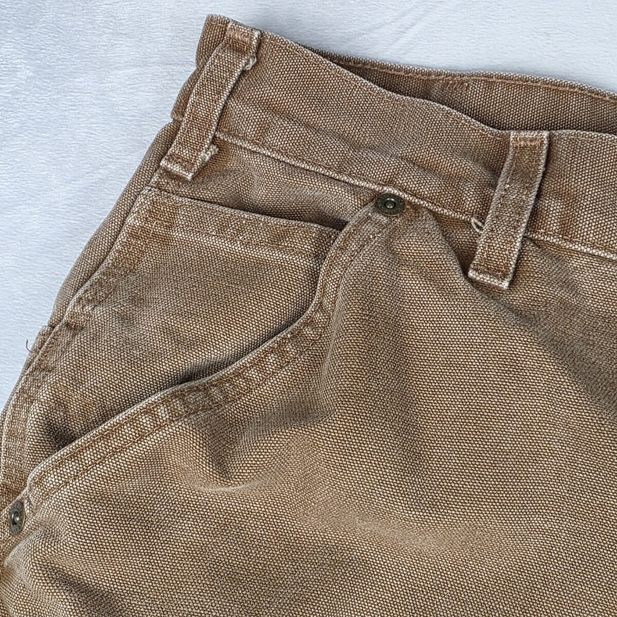 The Carhartt Double-Knee Carpenter Pants Mens in brown canvas are durable workwear perfect for casual or work occasions. These vintage-inspired pants feature a mid-rise waist and a straight leg style with a flat front design. Made with cotton canvas fabric, these pants have a 26-inch inseam and a 34-inch waist size, suitable for regular fit. The 5-pocket design, along with easy-care features, ensures functionality and style. Perfect for the winter, fall, or spring seasons, these Carhartt pants are machine washable and proudly made in the USA.