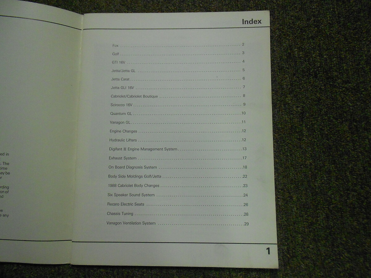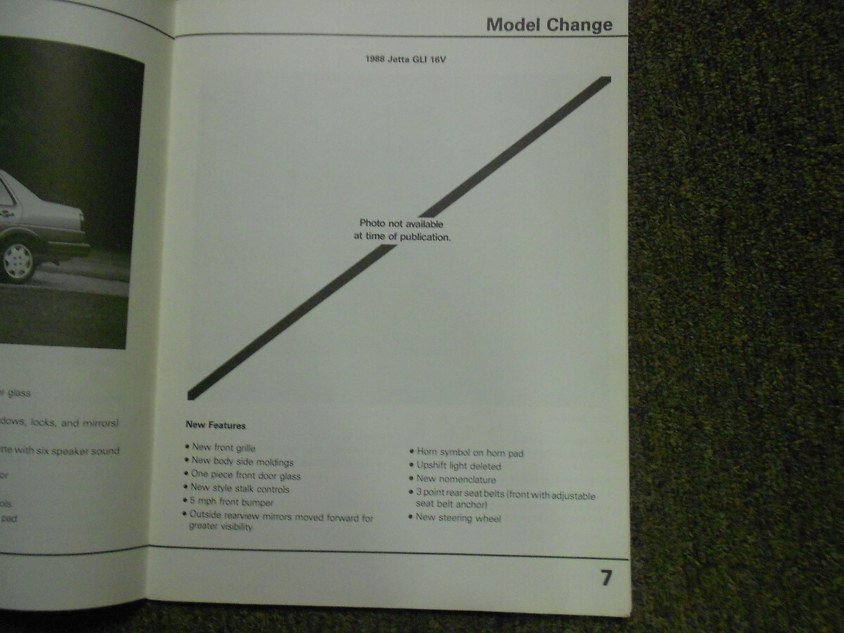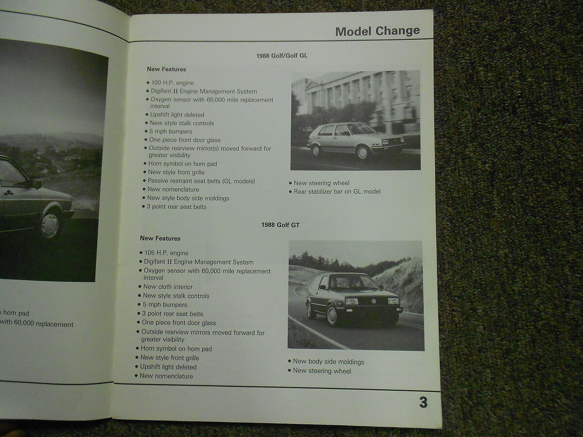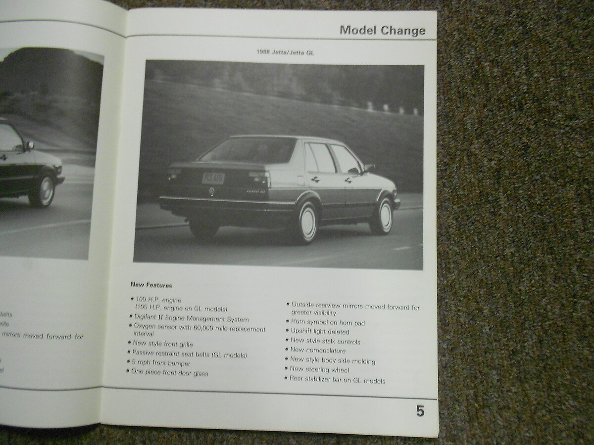 1988 Volkswagen Fox Golf Jetta Product Change Manual