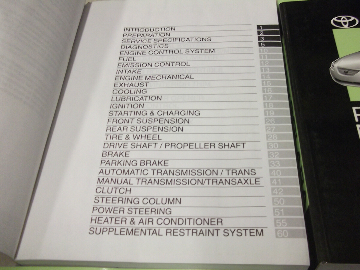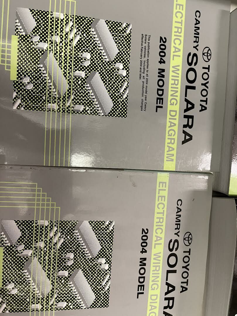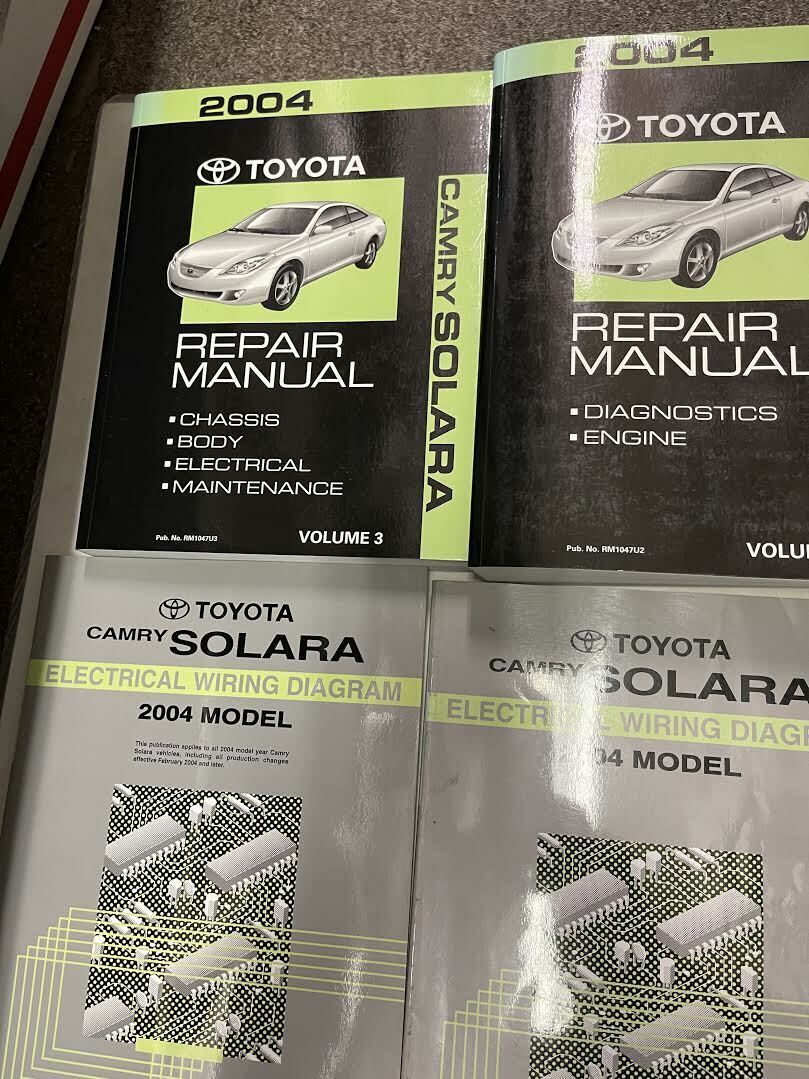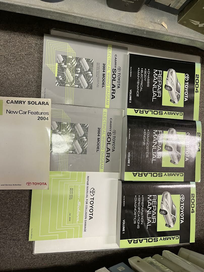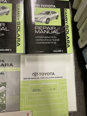 Manuale di servizio di fabbrica Toyota SOLARA del 2004, set di 3 volumi, manuali di schemi elettrici, manuale delle caratteristiche della nuova auto e manuale di collisione