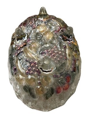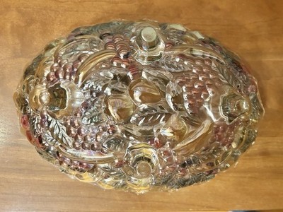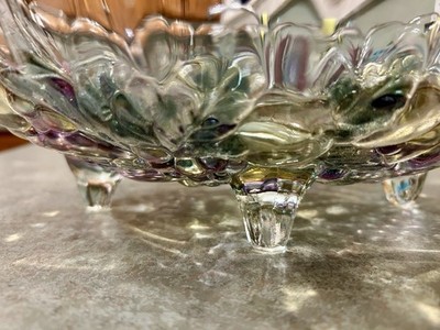 Vintage Indian Glass Footed Glass Bowl. Multi Colored Fruit Heavyweight 12 X 9.