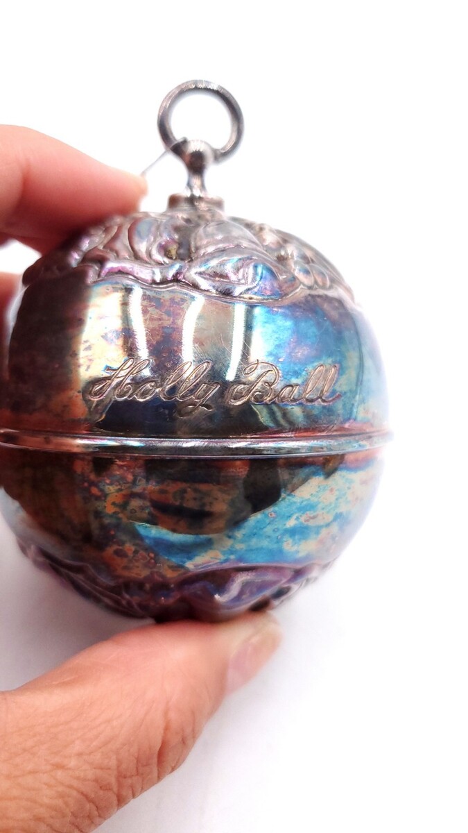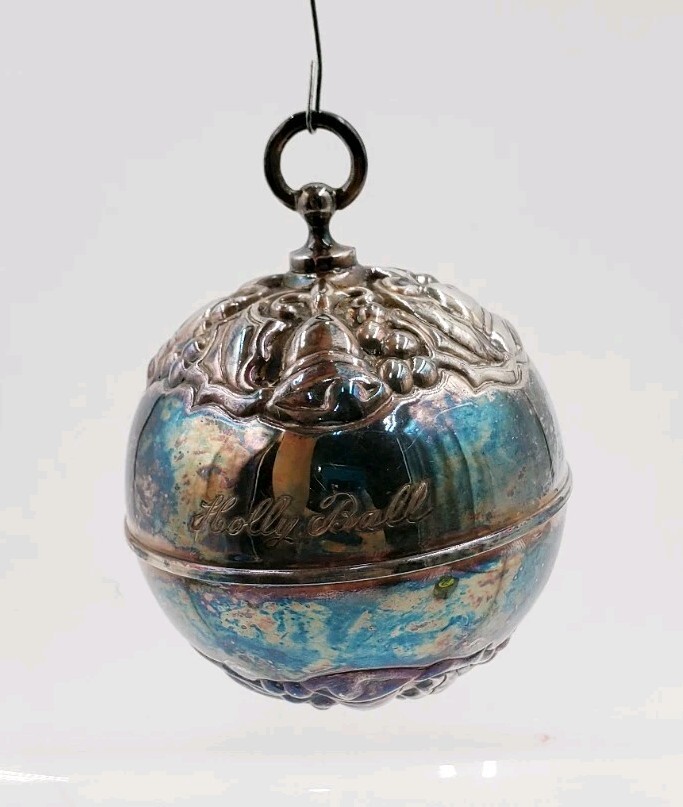 Reed & Barton Christmas Silver Plated 1978 Collectible Holly Ball Ornament