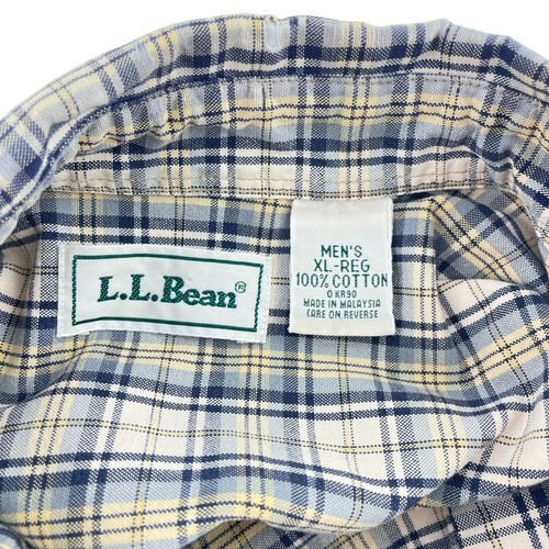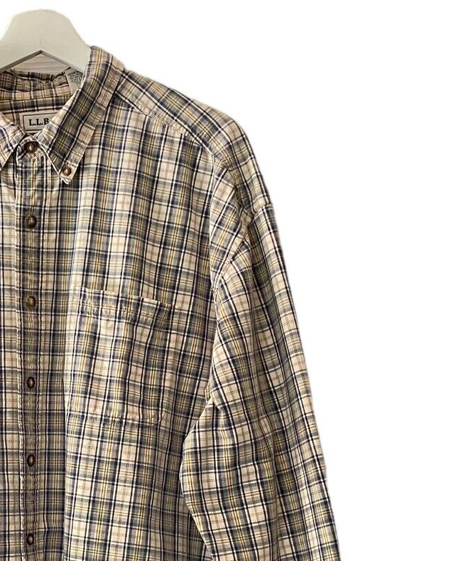 L.L. Bean Vintage Shirt Mens XL Blue Yellow Plaid Thick Cotton