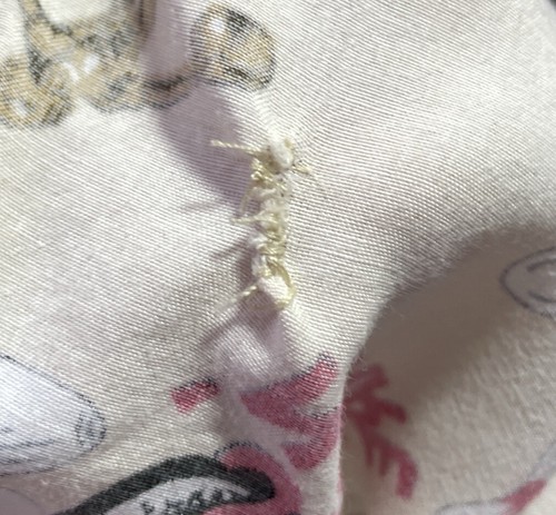 Good pre-owned condition with a repaired hole and a tiny fraying hole. See photos.