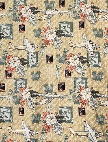 OP Sport VintageHawaiian Shirt Mens XL Pan Air Bi-Plane Hula Girl Surfer