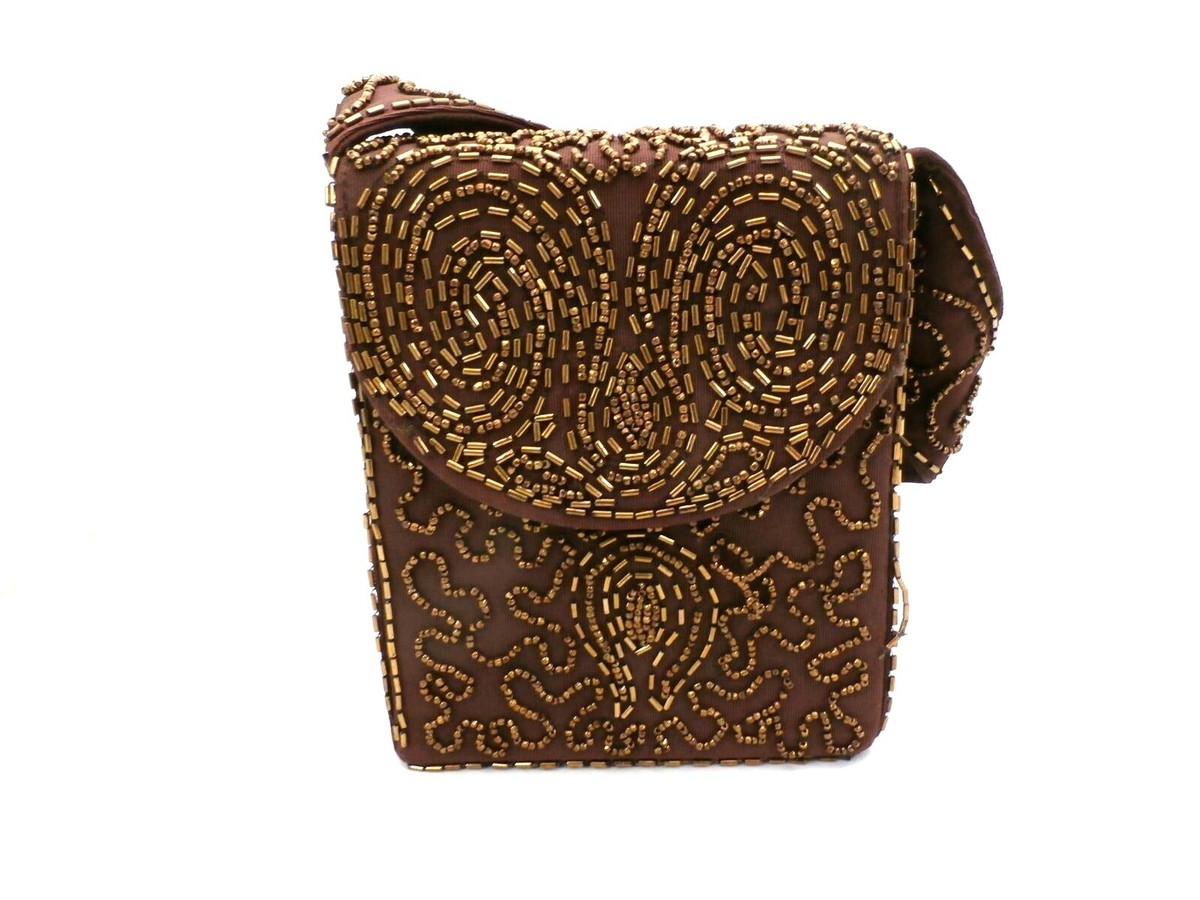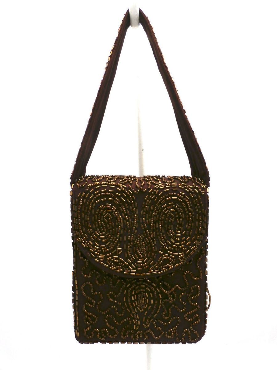 Vintage Beaded Box Purse Brown w Carnival and 46 similar items