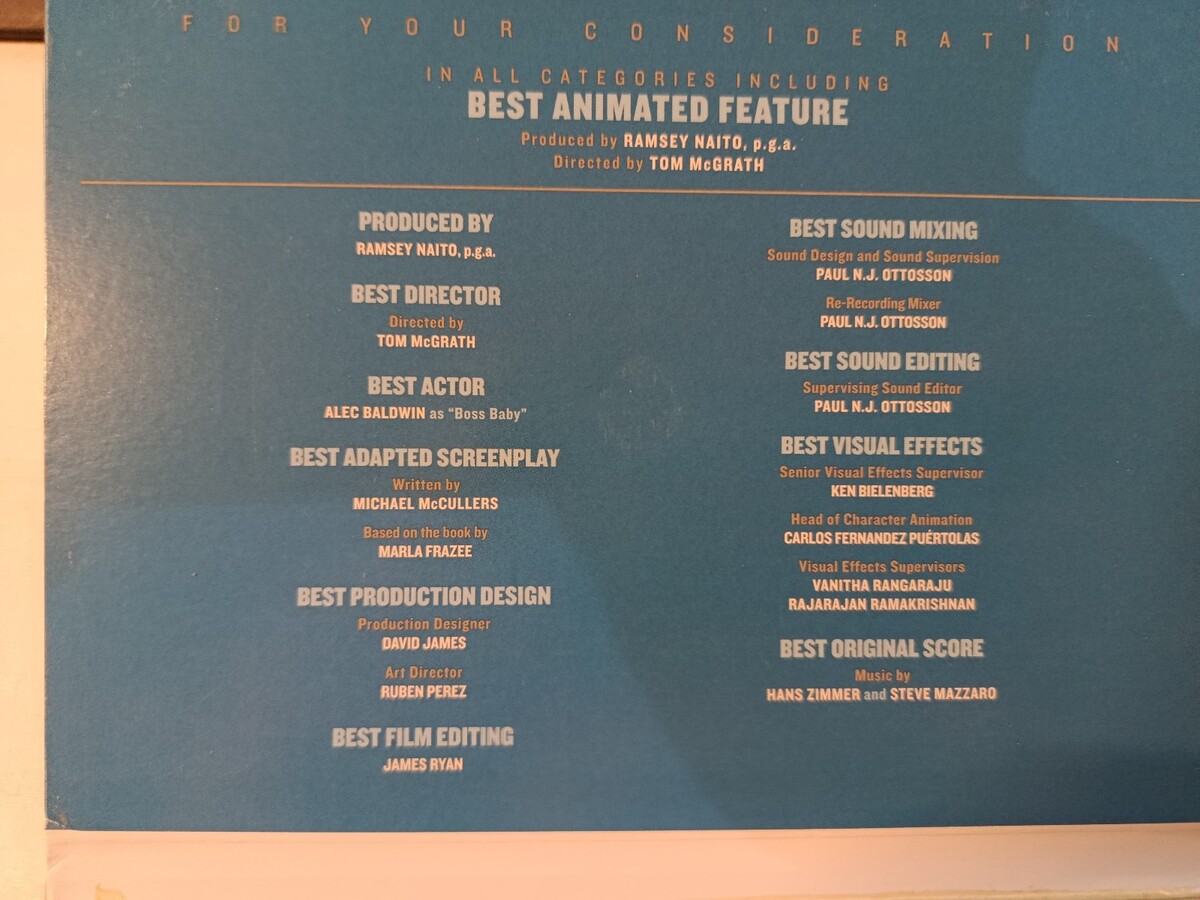 Promotional edition de The Boss Baby distributed by DreamWorks Animation para its consideration in film los .