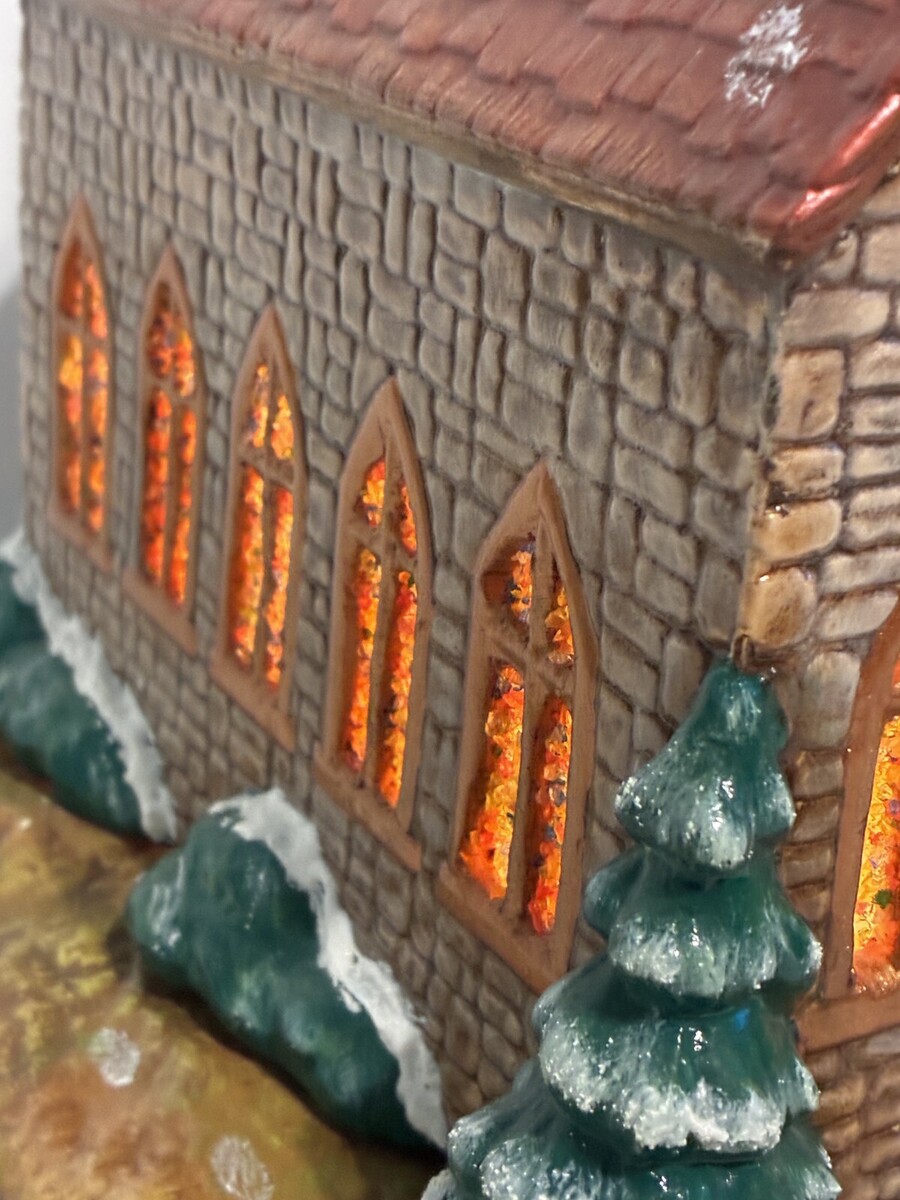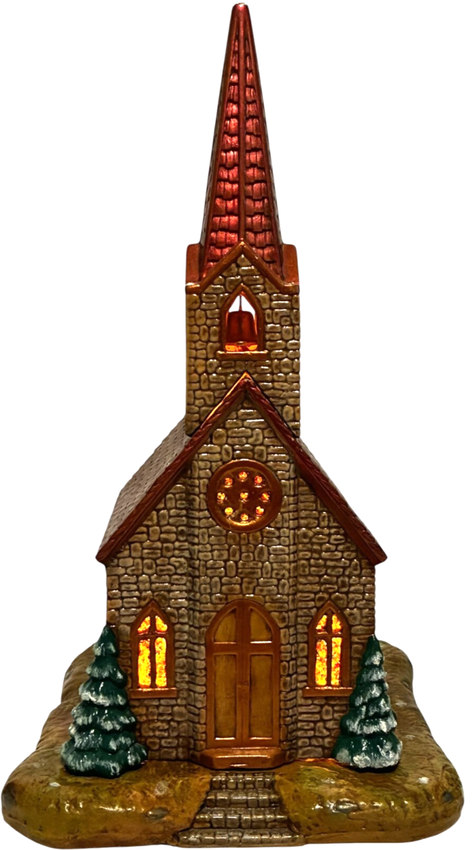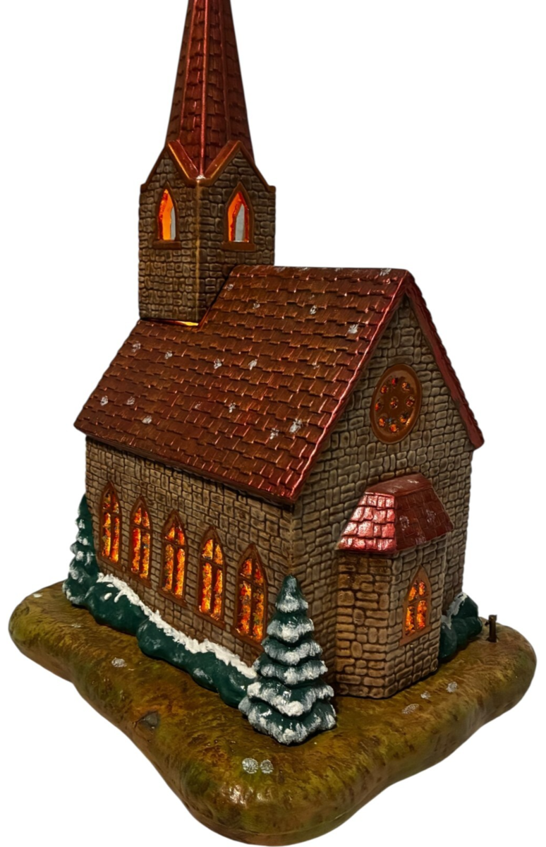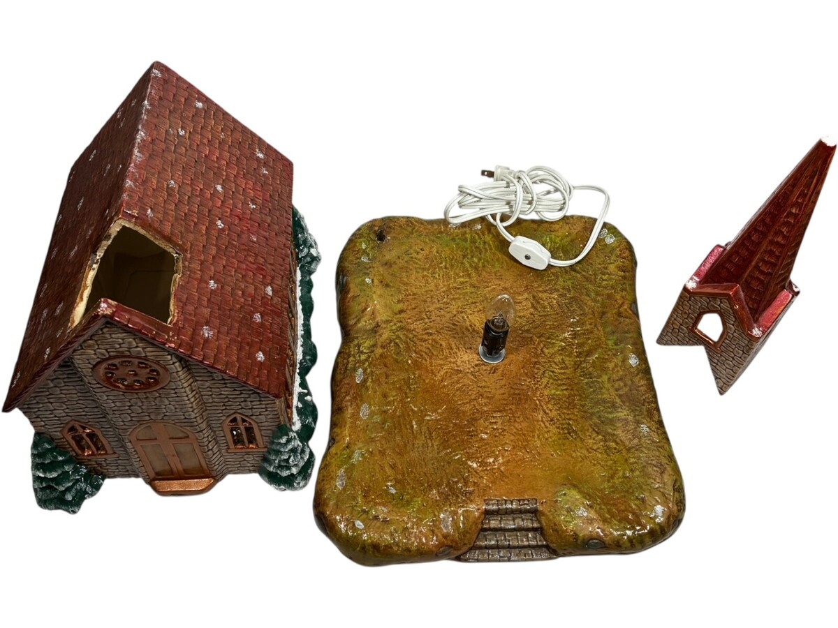 VTG Ceramic Church on Lighted Base with wind-up music - EUC - see video