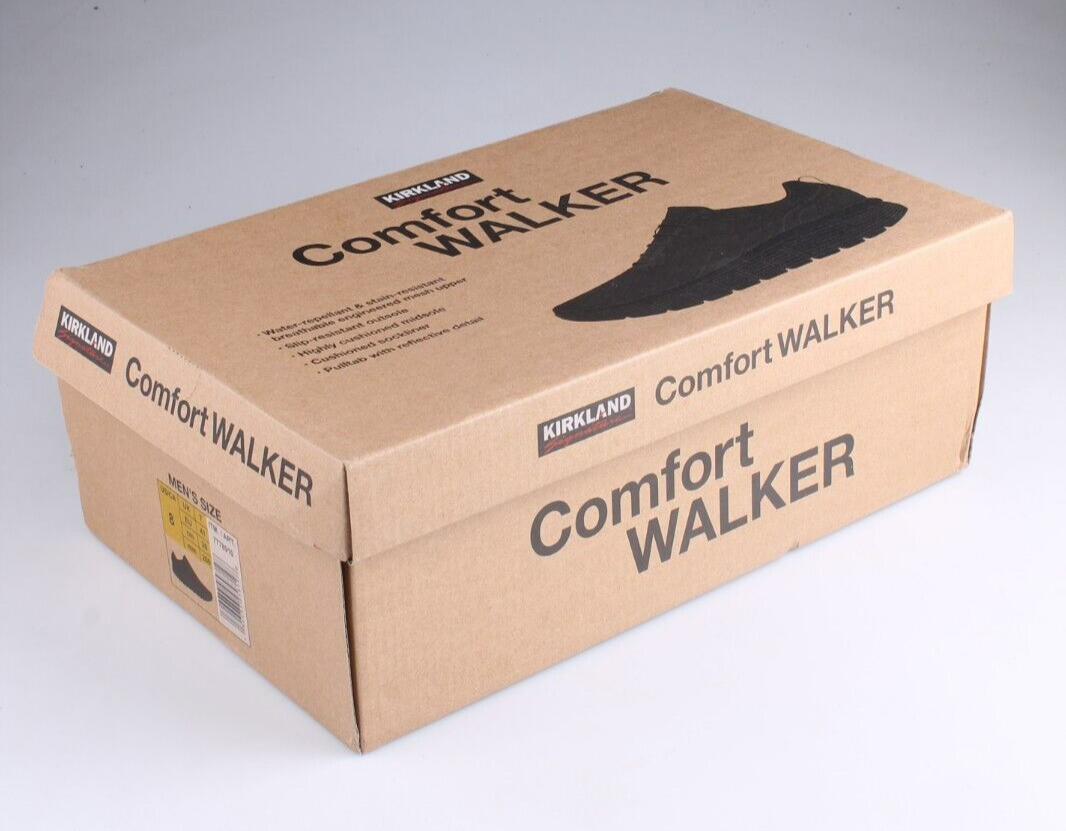 Le Kirkland signature des sneakers masculins confort Walker Shoe Black. Nouveau dans la boîte! Repullante a l'eau et resistant aux taches Semelle exterieure antiderapante Semelle intermediaire rembourree et doublure de chaussette Tapez avec des details reflechissants Comparez une conception solide avec un materiau superieur synthetique. Ces chaussures decontractees sont concues pour le confort et conviennent aux hommes.