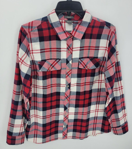 Eddie Bauer Womens Classic Fit Plaid Button Up Shirt Size Medium Business Casual
