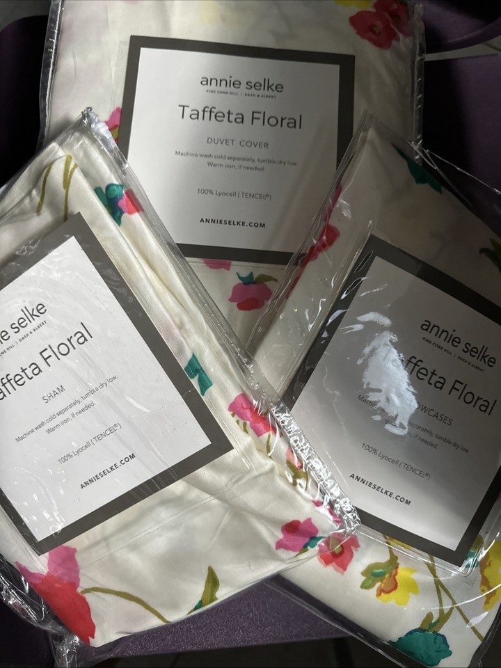 PINE CONE HILL-ANNE SELKE TAFFETA FLO 4 F/Q DUVET 1 ST SHAM 2 ST PIL CASES BNIP