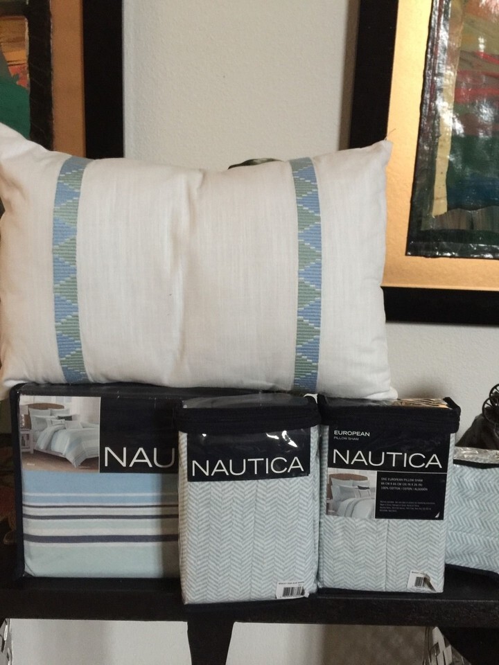 NAUTICA MAKAY 7pc KING DUVET SET 1 DUVET/2 K SHAMS/ 3 EUROS/ 1 DECO AQUA NIP