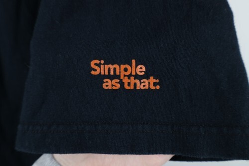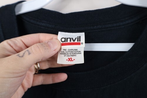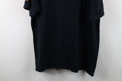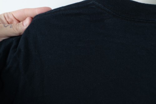 Blemishes back top/bottom. Collar, shoulders, arms discolored. Graphics, color faded. Pilling