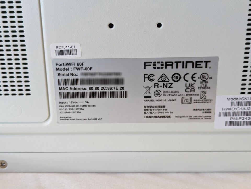 Fortinet Fortigate FortiWiFi 60F Secure SD-WAN Appliance (FWF-60F-A) - For Parts