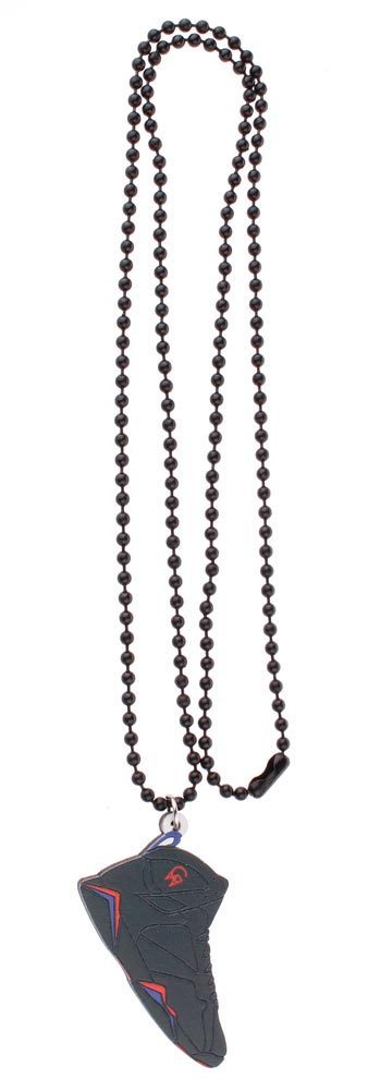 Esto es para un nuevo Good Wood Raptor Jordan 7 Sneaker Colgante Collar El colgante mide 1 "x 2" Collar de bola negra mide 30 " Estos fueron producidos en Nueva York en cantidades muy limitadas. ¡Toma el tuyo ahora que todavía puedes!