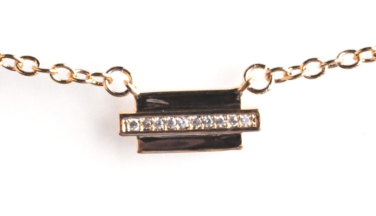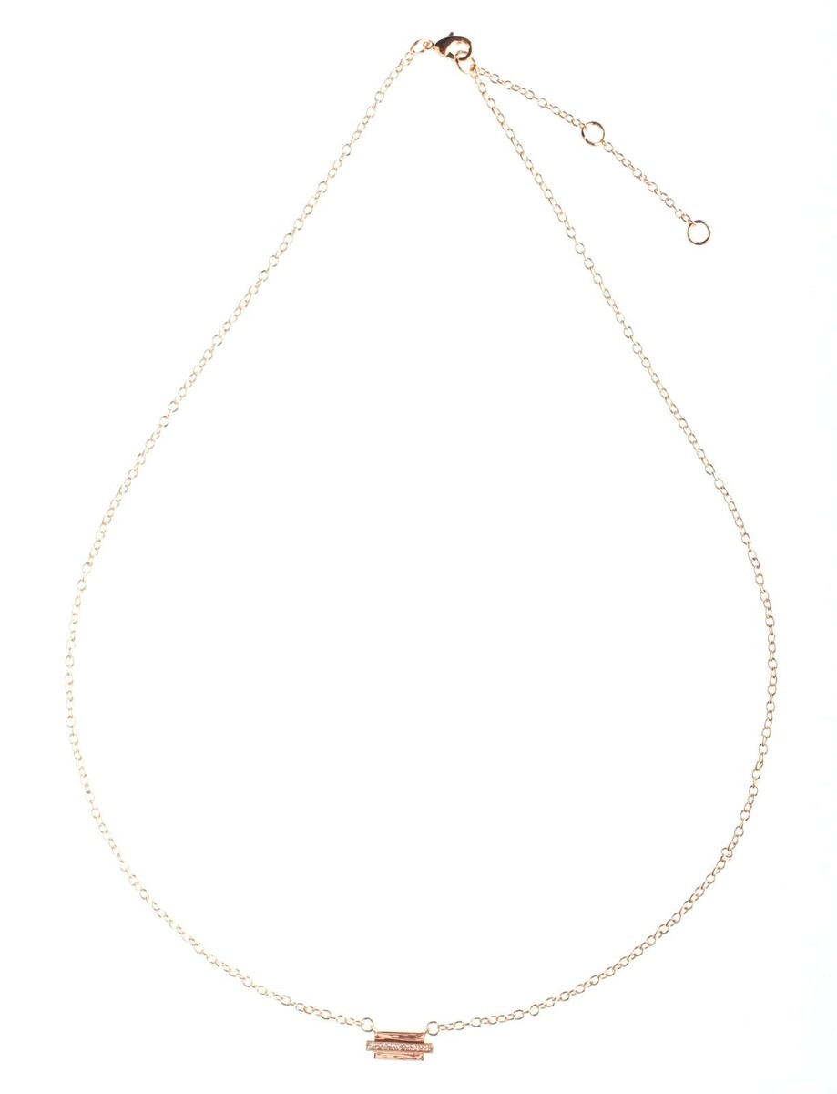 Collana Bar Pave In Cristallo Di Zirconia Cubica Rosa Placcata In Oro NWT