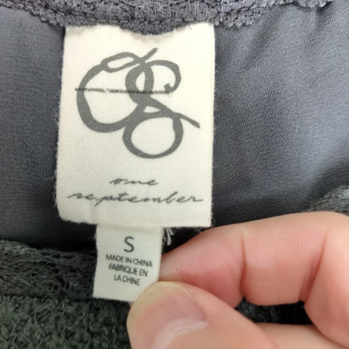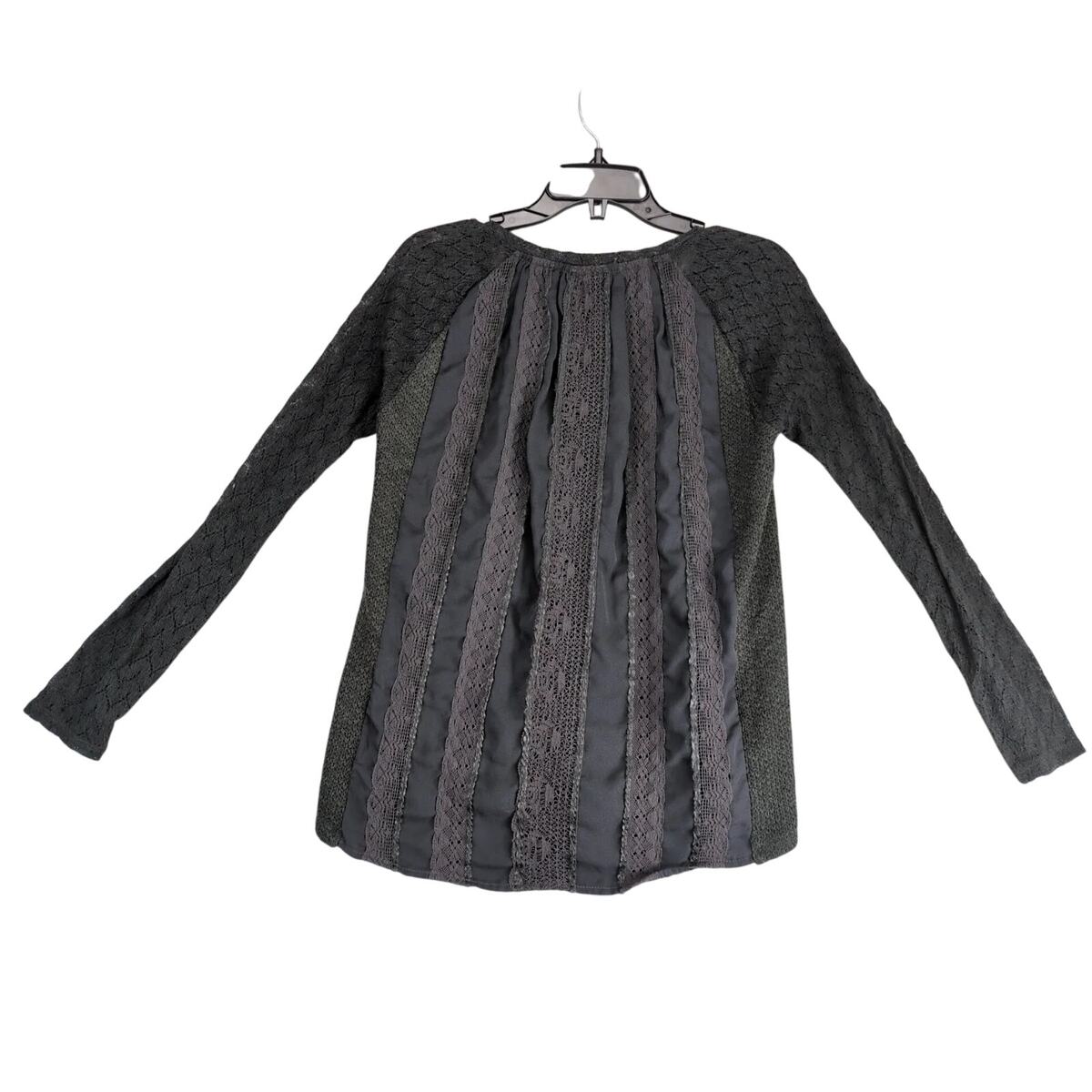 One September Anthropologie Gray Knit Top Women's S Long Lace Sleeves, Back Trim