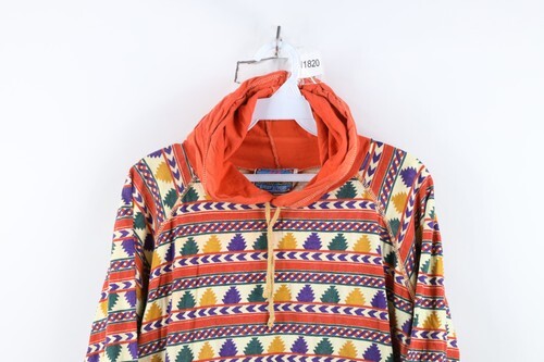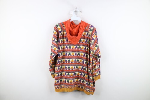 Vintage 90s Streetwear Womens Large Southwestern Boxy Fit Hooded Hoodie T-Shirt