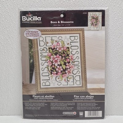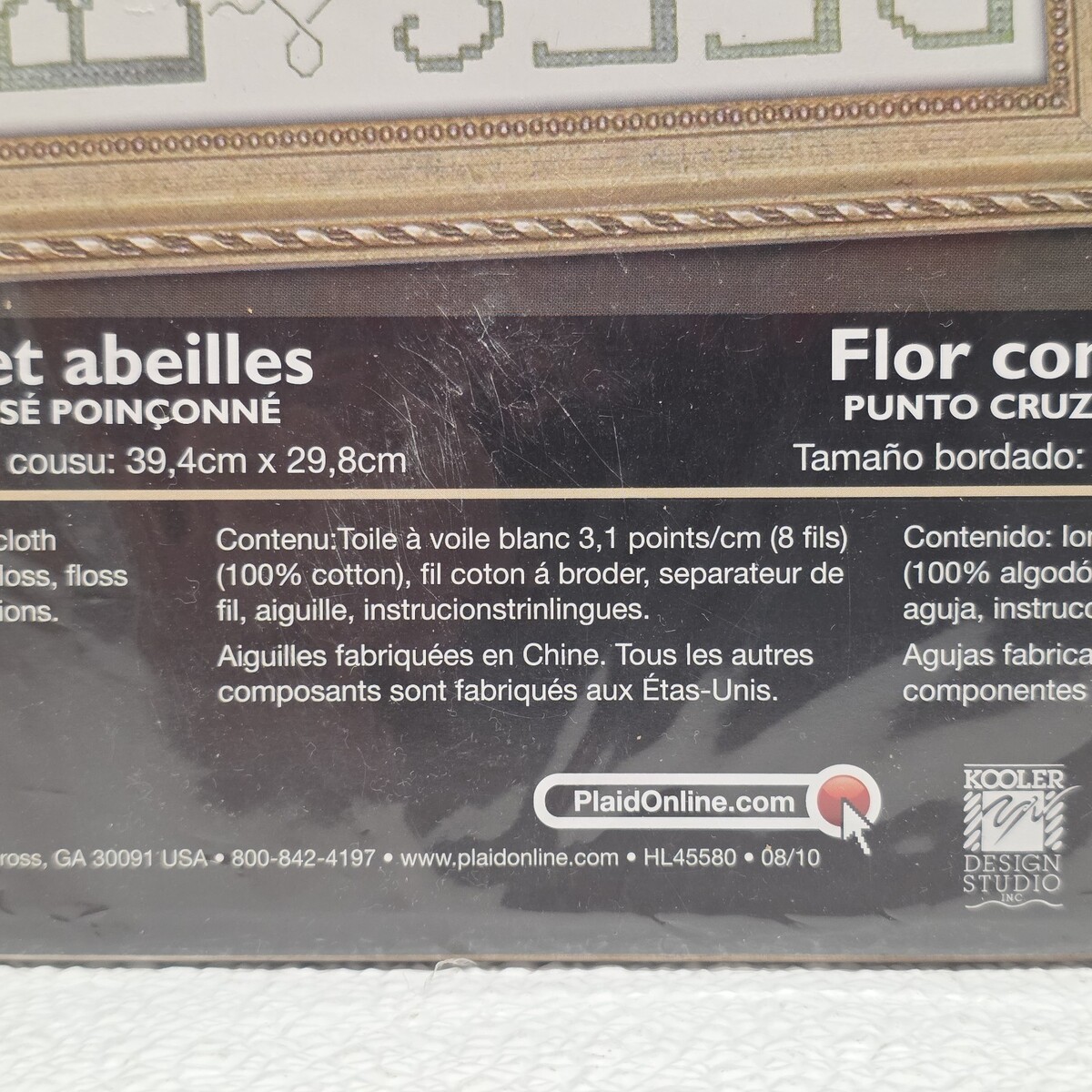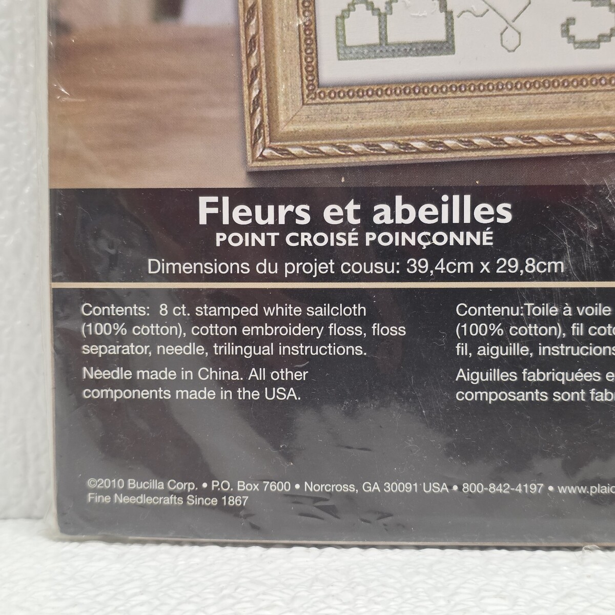 Bucilla Plaid Bees & Blossoms Stamped Cross Stitch Kit #45580