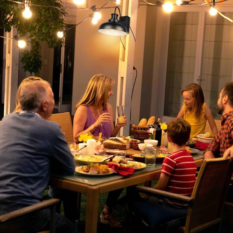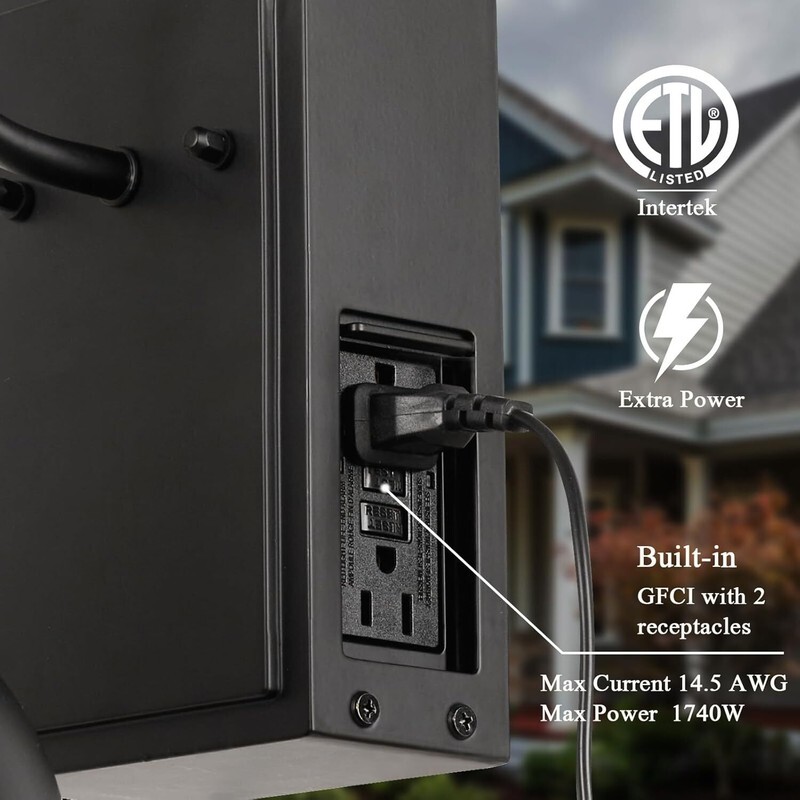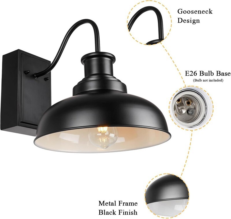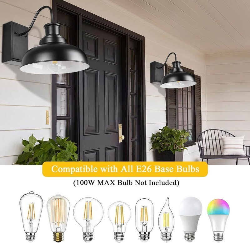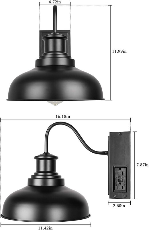 Outdoor Gooseneck Barn Light with GFCI Outlet, Black Farmhouse Wall Sconce