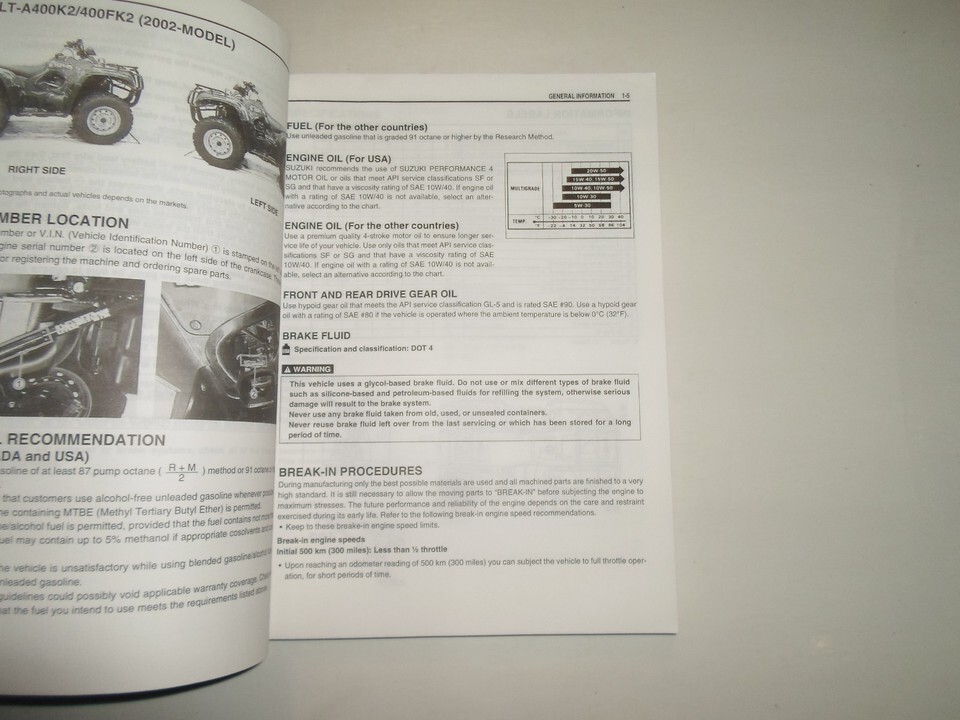 2002 Suzuki LT-A400/F Service Reparation Atelier Manuel OEM 99500-43040-01E